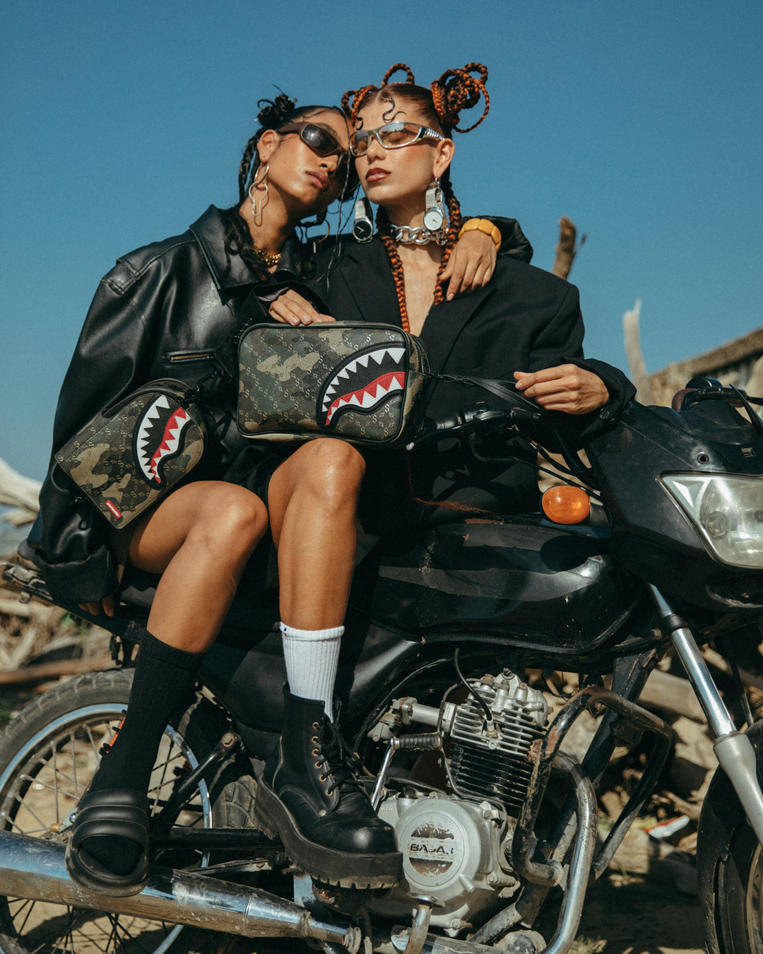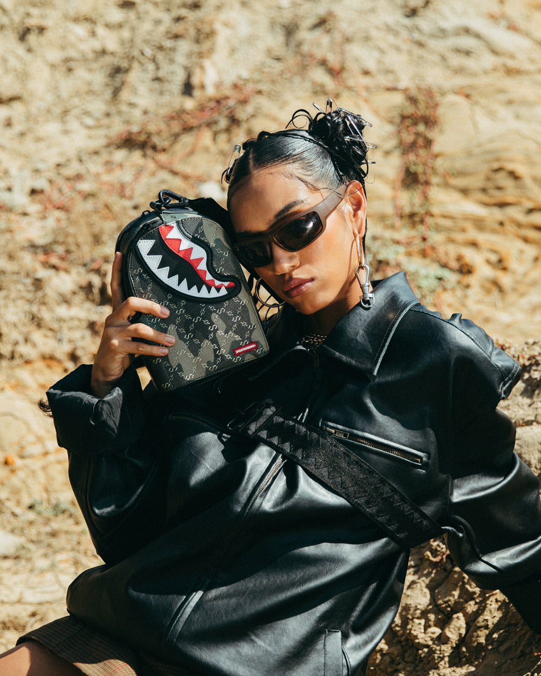 Laser cut camo fabric with metallic fabric underneath for subtle shimmer