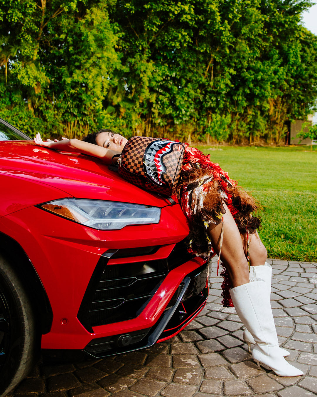 Dimensions: 10" x 5" x 11.5" • Two large main zippered compartments • Side pockets • Zippered Stash pocket • Adjustable straps for custom sizing • Gold zippers with metal hardware