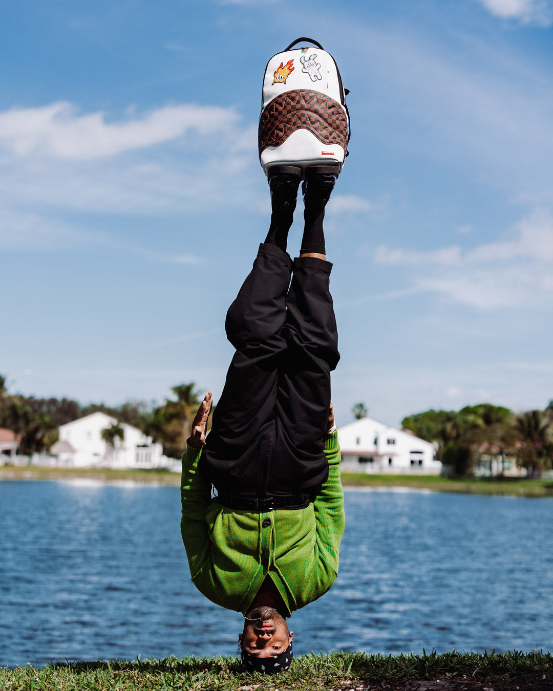 Dimensions: 18" x 6" x 11.5" • Front zipper pocket • Side pockets • Zippered Stash pocket • Separate velour sunglass compartment • Ergonomic mesh back padding • Adjustable Straps for custom sizing • Gold zippers with metal hardware • Metal "Sprayground Authentic" badge • Slide through back sleeve connects to carry-on luggage to free your hands