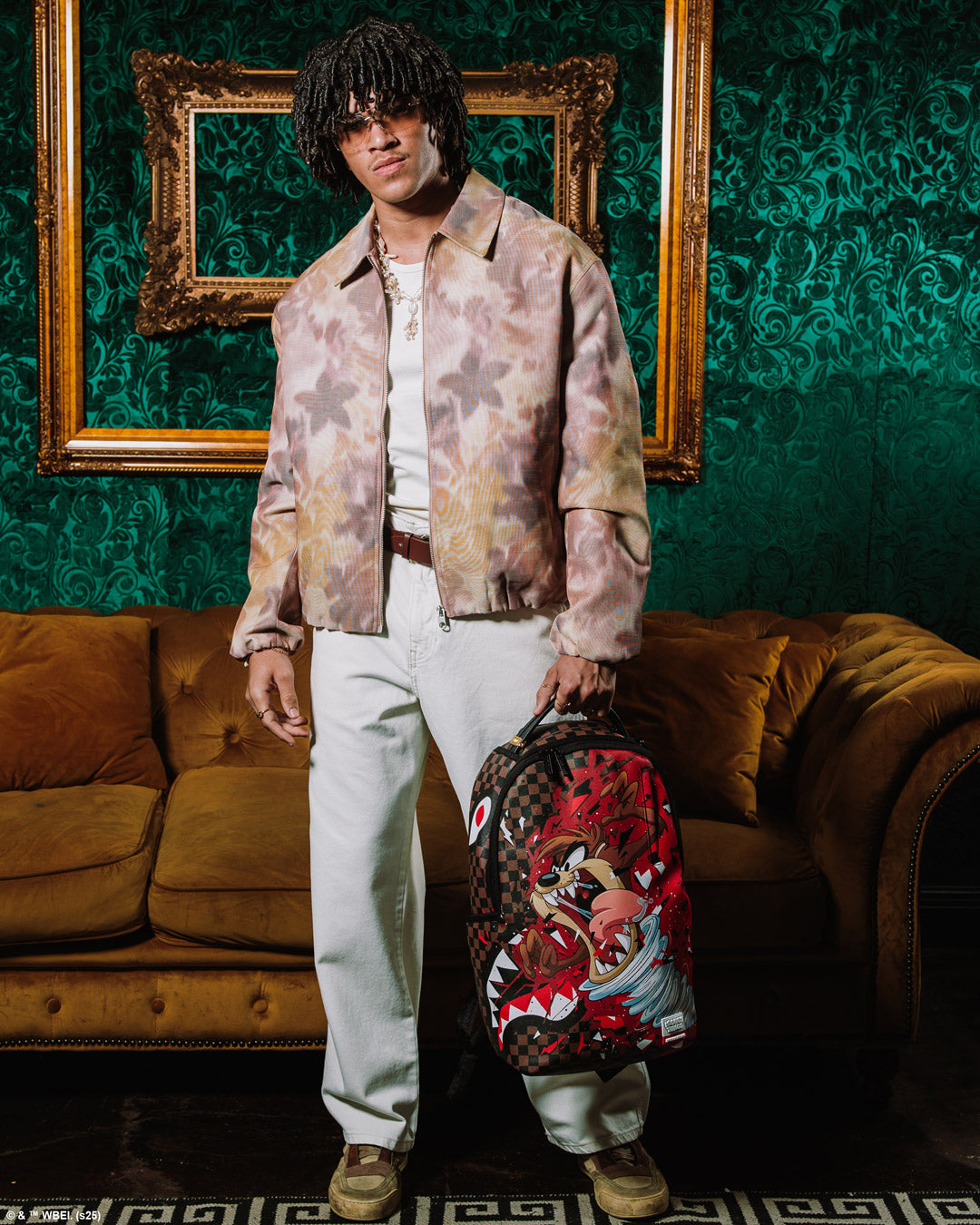 Dimensions: 18" x 6" x 11.5" • Front zipper pocket • Side pockets • Zippered Stash pocket • Separate velour sunglass compartment • Ergonomic mesh back padding • Adjustable Straps for custom sizing • Gold zippers with metal hardware • Metal "Sprayground Authentic" badge • Slide through back sleeve connects to carry-on luggage to free your hands