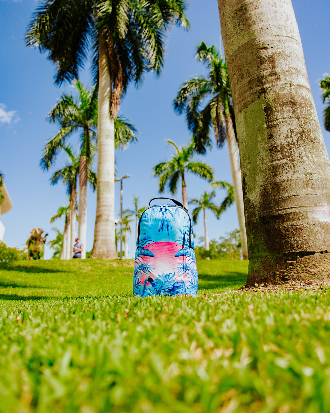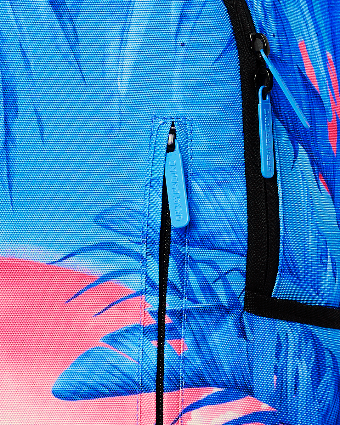 Dimensions: 18" x 6" x 11.5" • Front zipper pocket • Side pockets • Zippered Stash pocket • Separate velour sunglass compartment • Ergonomic mesh back padding • Adjustable Straps for custom sizing • Gold zippers with metal hardware • Metal "Sprayground Authentic" badge • Slide through back sleeve connects to carry-on luggage to free your hands
