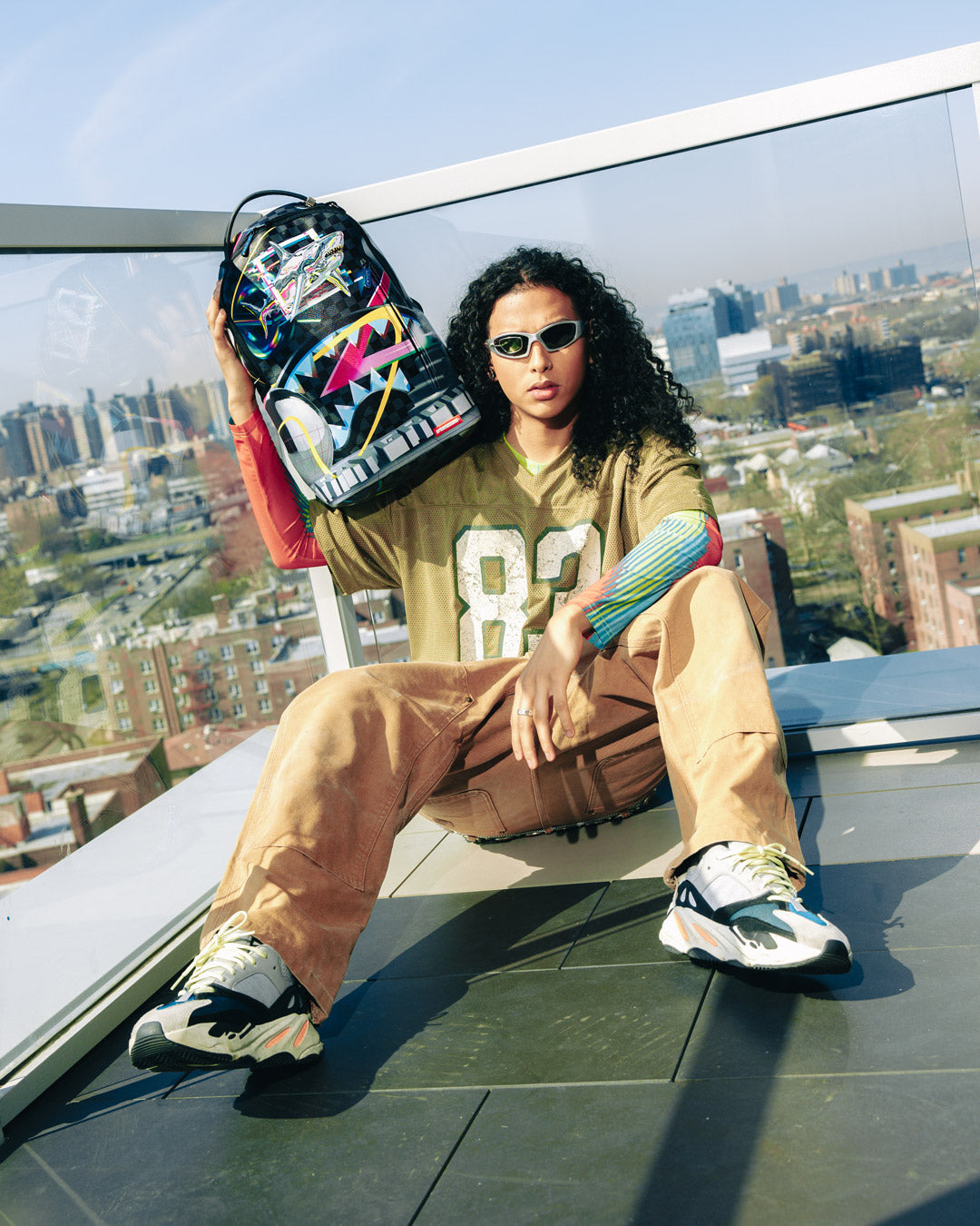 Dimensions: 18" x 6" x 11.5" • Front zipper pocket • Side pockets • Zippered Stash pocket • Separate velour sunglass compartment • Ergonomic mesh back padding • Adjustable Straps for custom sizing • Gold zippers with metal hardware • Metal "Sprayground Authentic" badge • Slide through back sleeve connects to carry-on luggage to free your hands