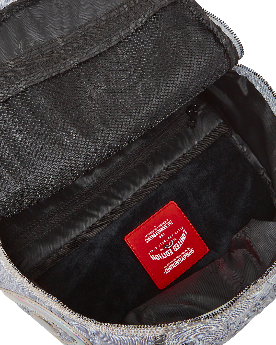 Dimensions: 18" x 6" x 11.5" • Front zipper pocket • Side pockets • Zippered Stash pocket • Separate velour sunglass compartment • Ergonomic mesh back padding • Adjustable Straps for custom sizing • Gold zippers with metal hardware • Metal "Sprayground Authentic" badge • Slide through back sleeve connects to carry-on luggage to free your hands