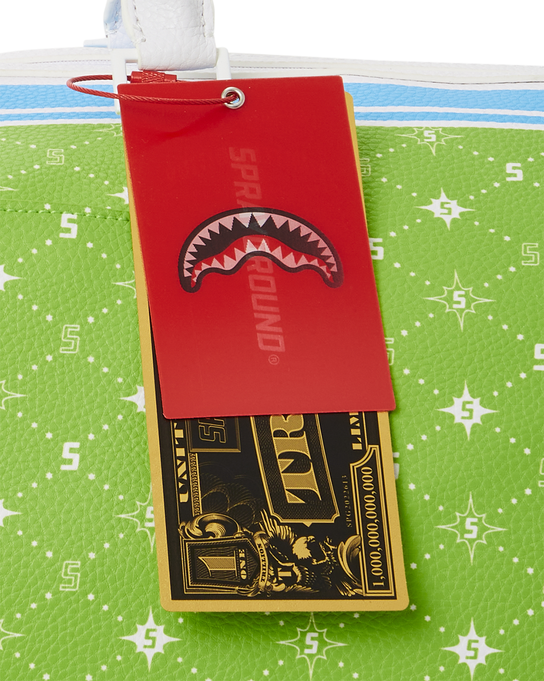 Dimensions: 20" x 10" x 10.75" • Metal zipper pocket• Back Zippers •Zippered sneaker pocket • gold zippers • Adjustable Straps for custom sizing •Metal Zippers with Metal Hardware • bag of Sprayground money