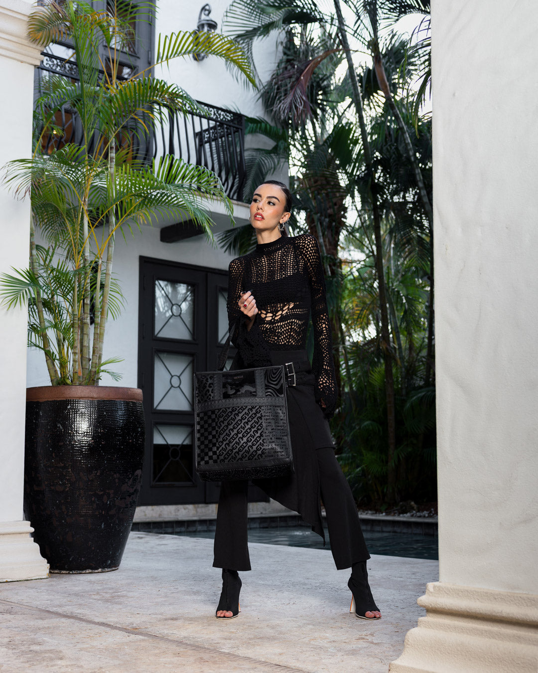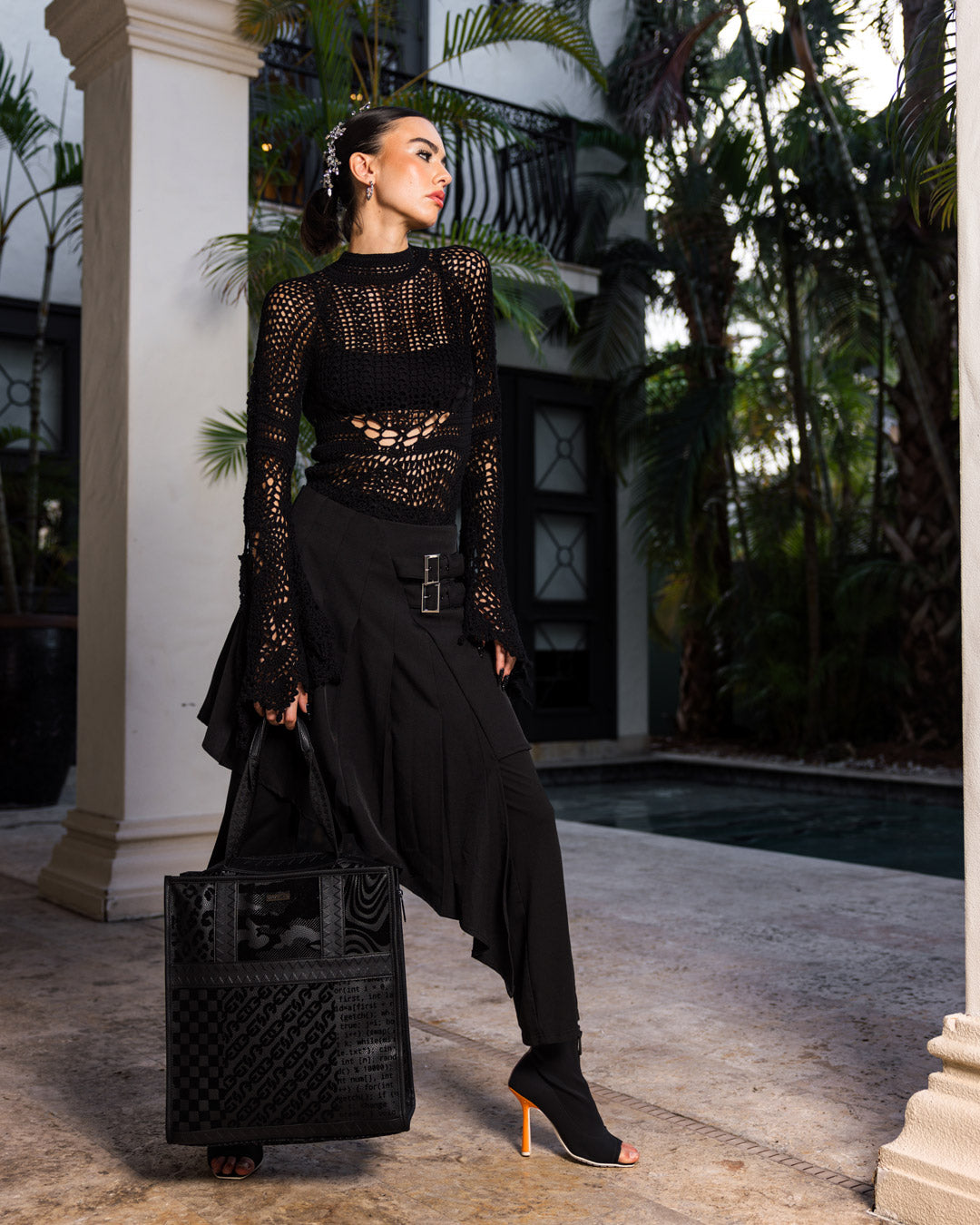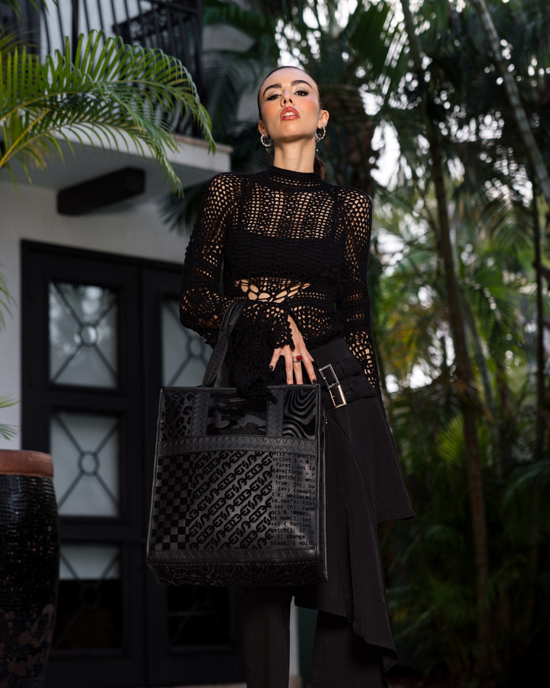 PVC carry-on with flocking technique, PVC applique, and cut and sew sharkmouth
