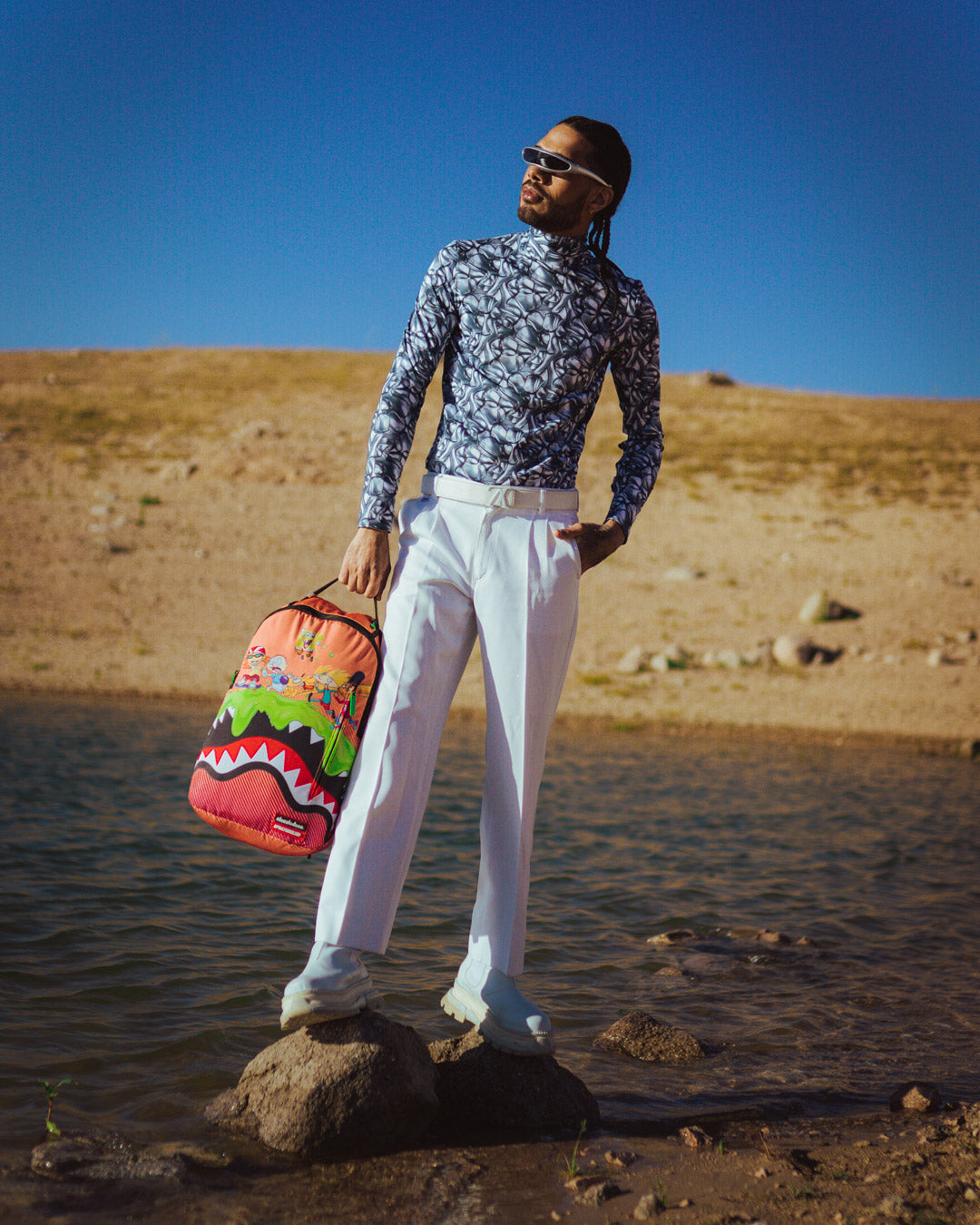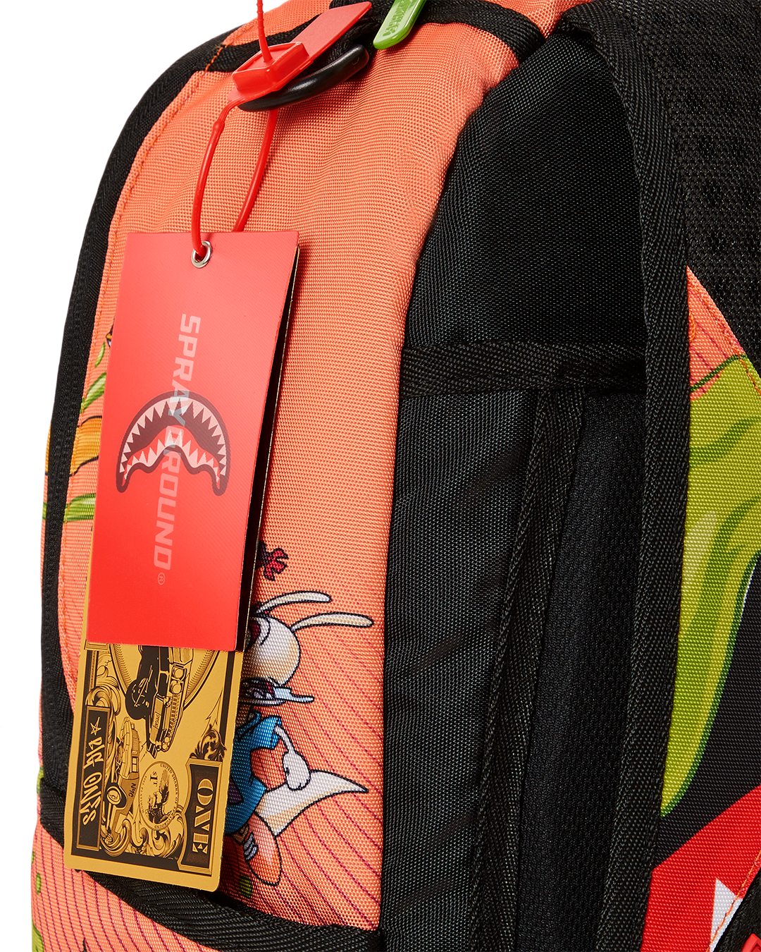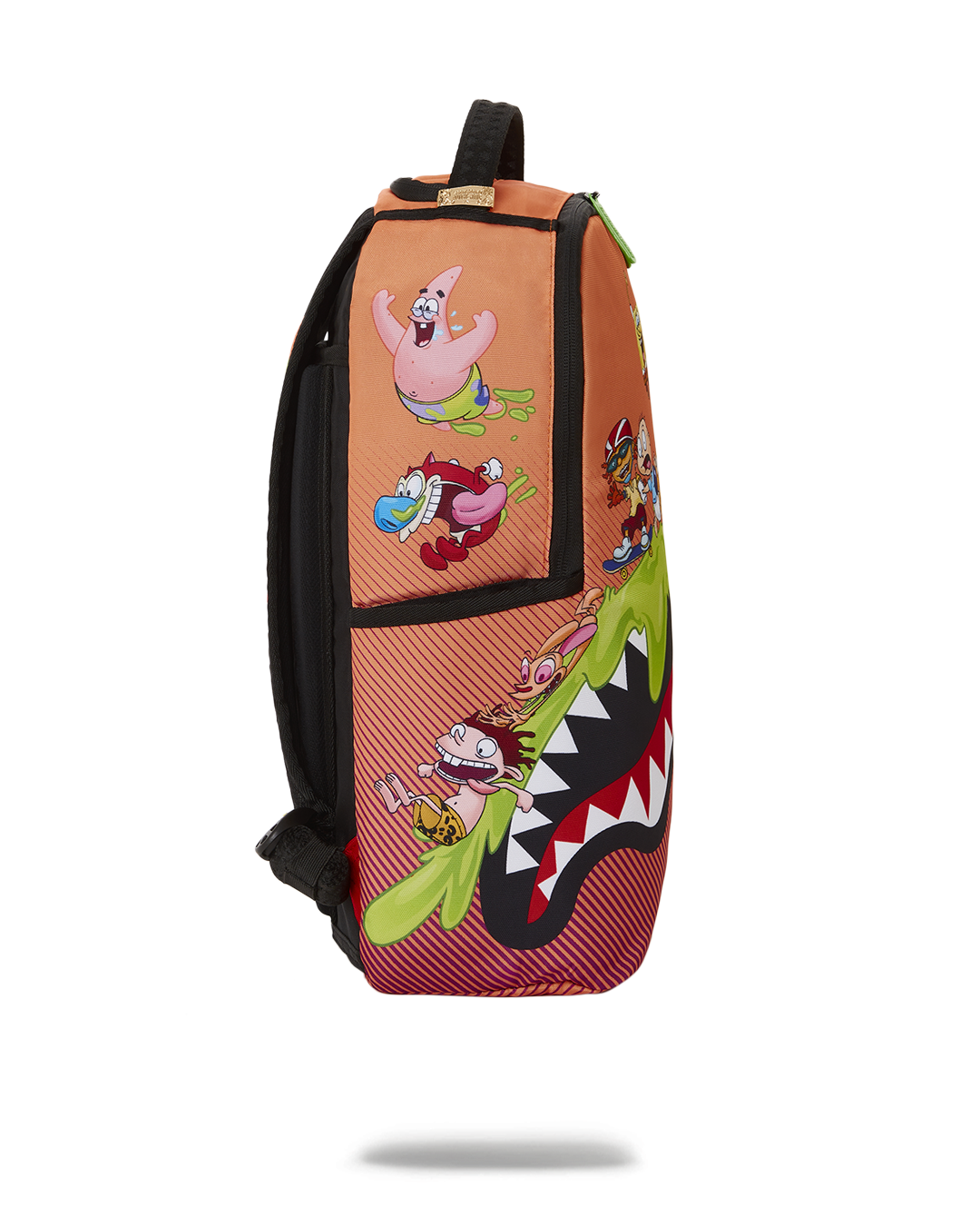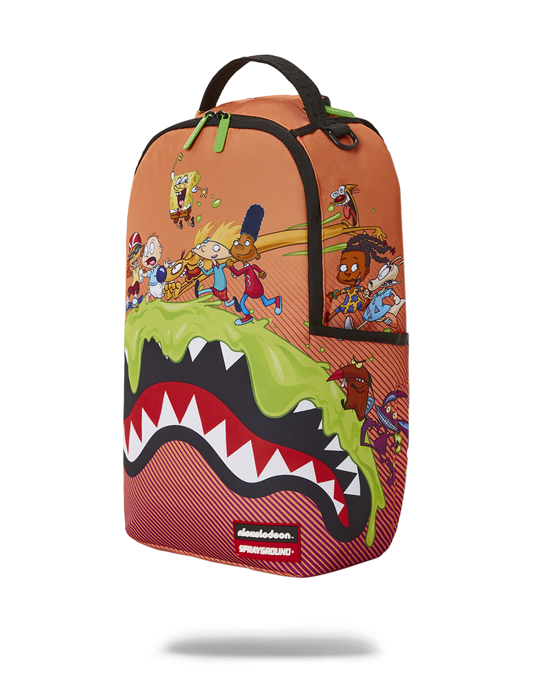 ExteriorDimensions: 18" x 6" x 11.5" • Front zipper pocket • Side pockets • Zippered Stash pocket • Separate velour sunglass compartment • Ergonomic mesh back padding • Adjustable Straps for custom sizing • Green zippers with metal hardware • Metal "Sprayground Authentic" badge • Slide through back sleeve connects to carry on luggage to free your hands