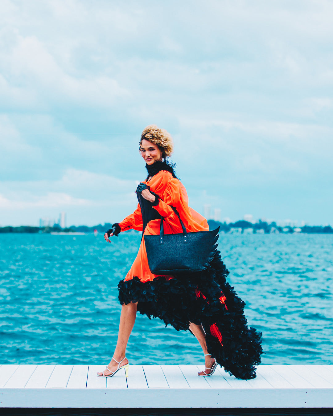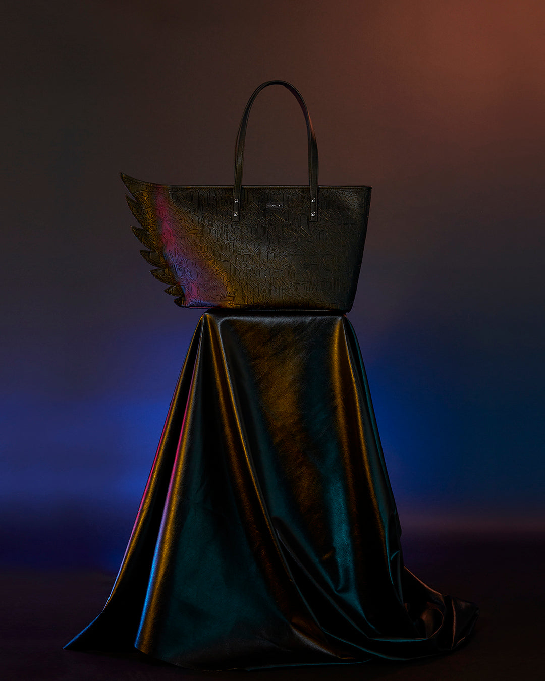 Wing shape detail, Zipper Closure, Gunmetal Hardware Details