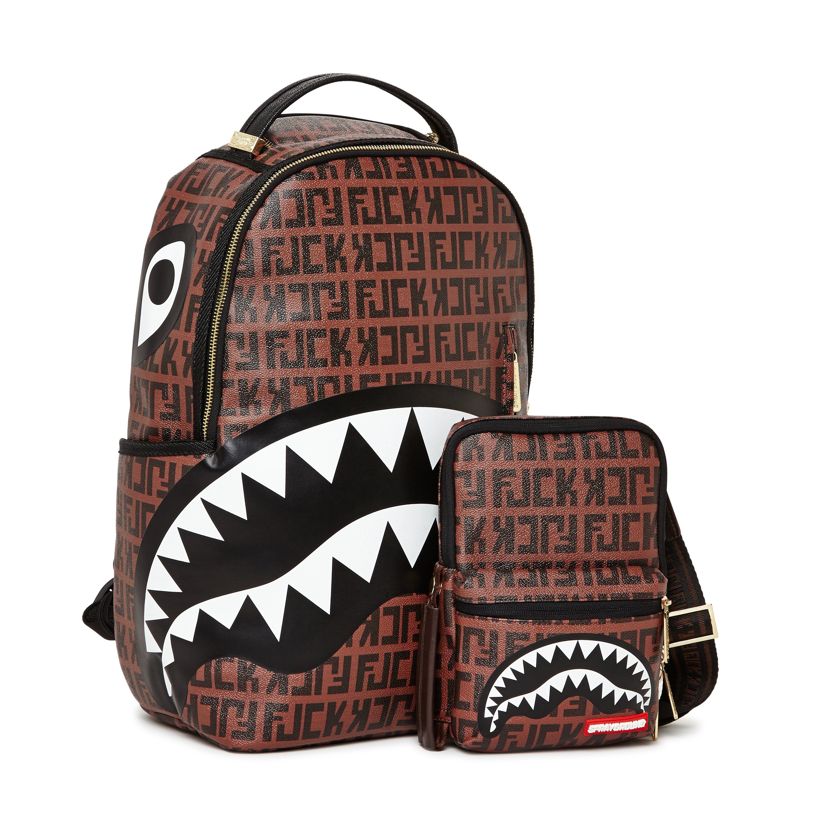 ExteriorDimensions: 18" x 6" x 11.5" •Front zipper pocket• Side pockets • Zippered Stash pocket • Ergonomic mesh back padding• Adjustable Straps for custom sizing • Nylon Zippers with Metal Hardware • Metal "Sprayground Authentic" badge •Slide through back sleeve connects to Carry on luggage to free your hands