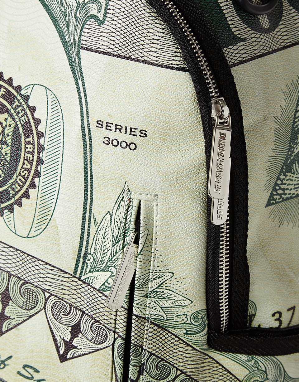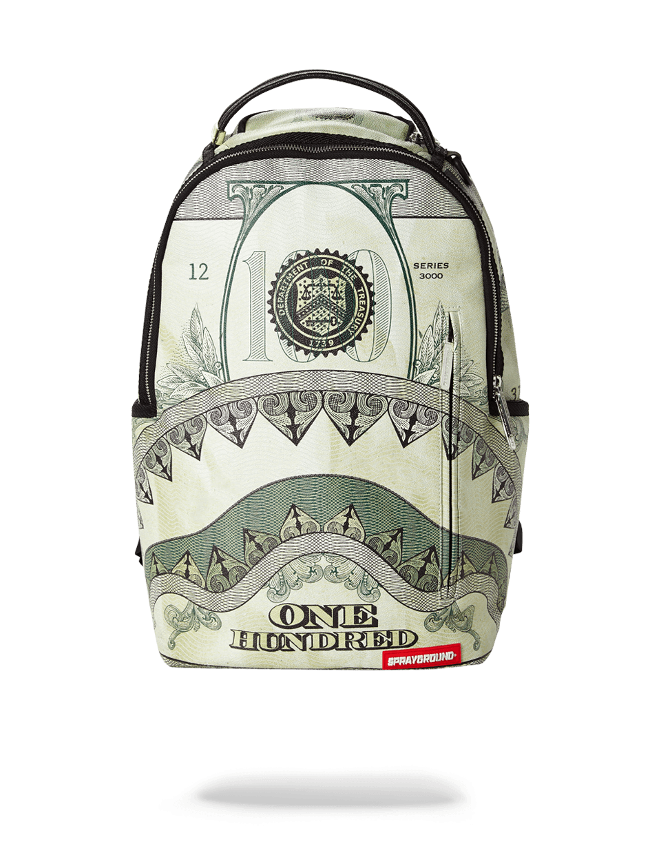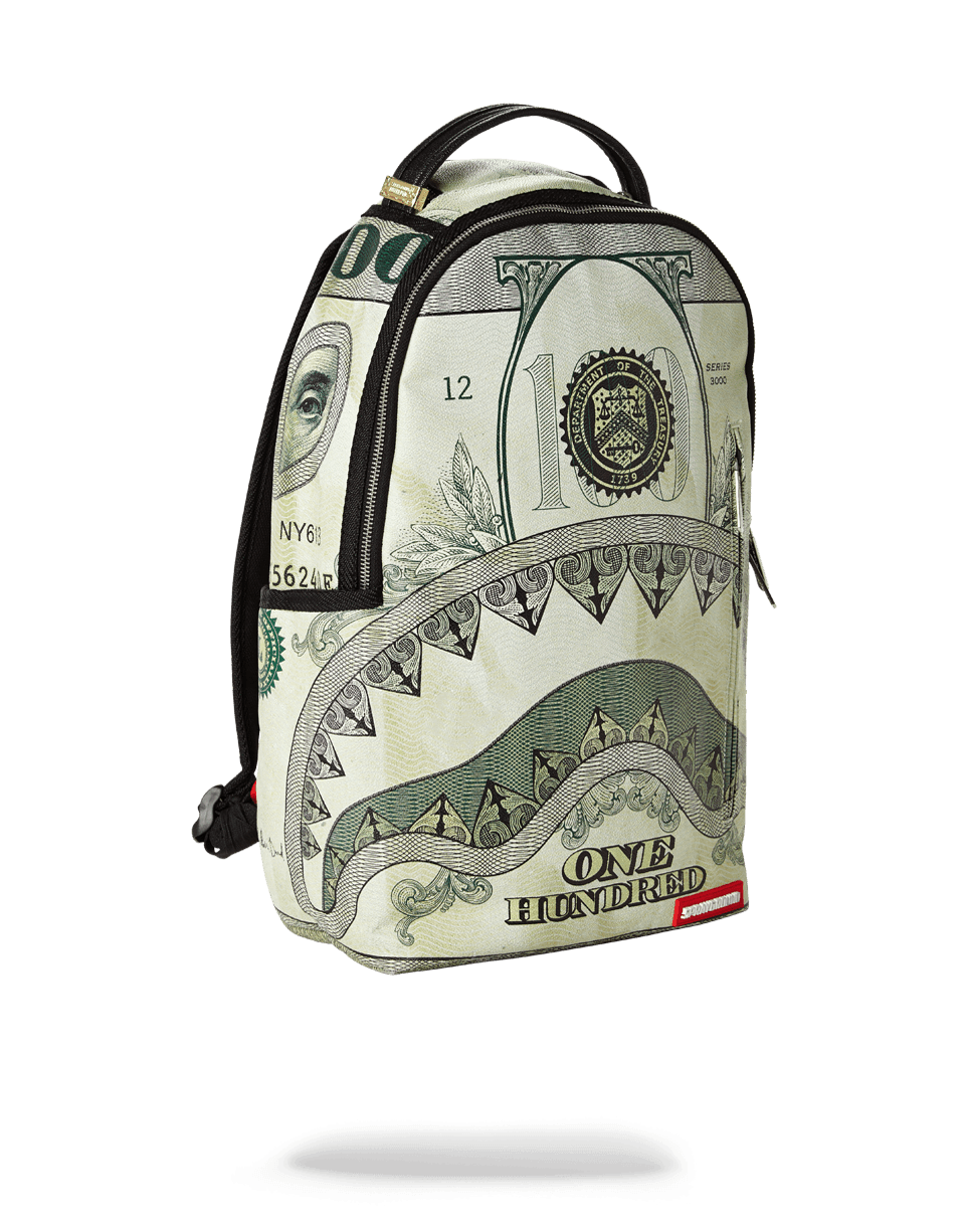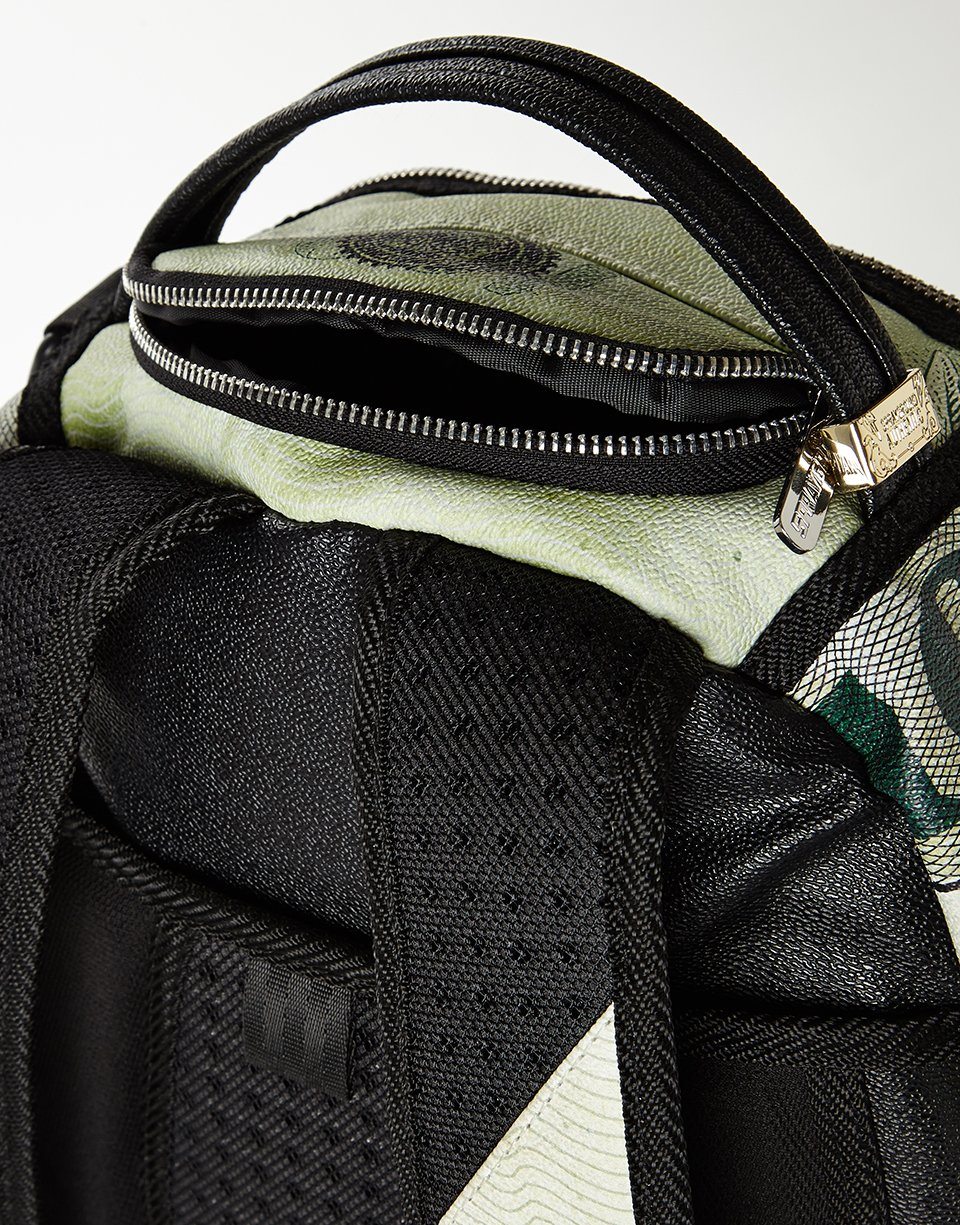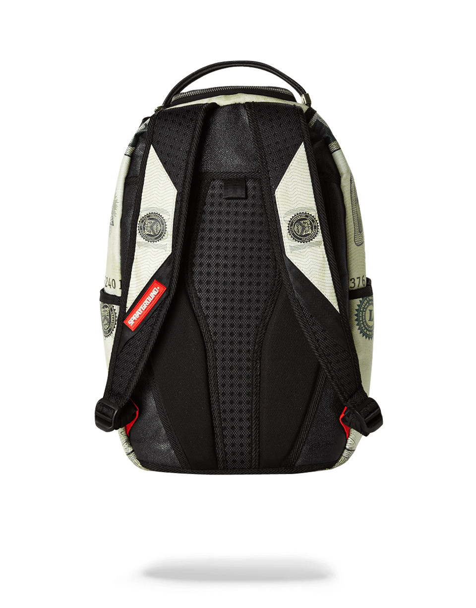 ExteriorDimensions: 18" x 6" x 11.5" ∙ Front zipper pocket ∙ Side pockets ∙ Zippered Stash pocket ∙ Ergonomic mesh back padding ∙ Adjustable Straps for custom sizing ∙ Nylon Zippers with Metal Hardware ∙ Metal "Sprayground Authentic" badge ∙ Slide through back sleeve connects to Carry on luggage to free your hands