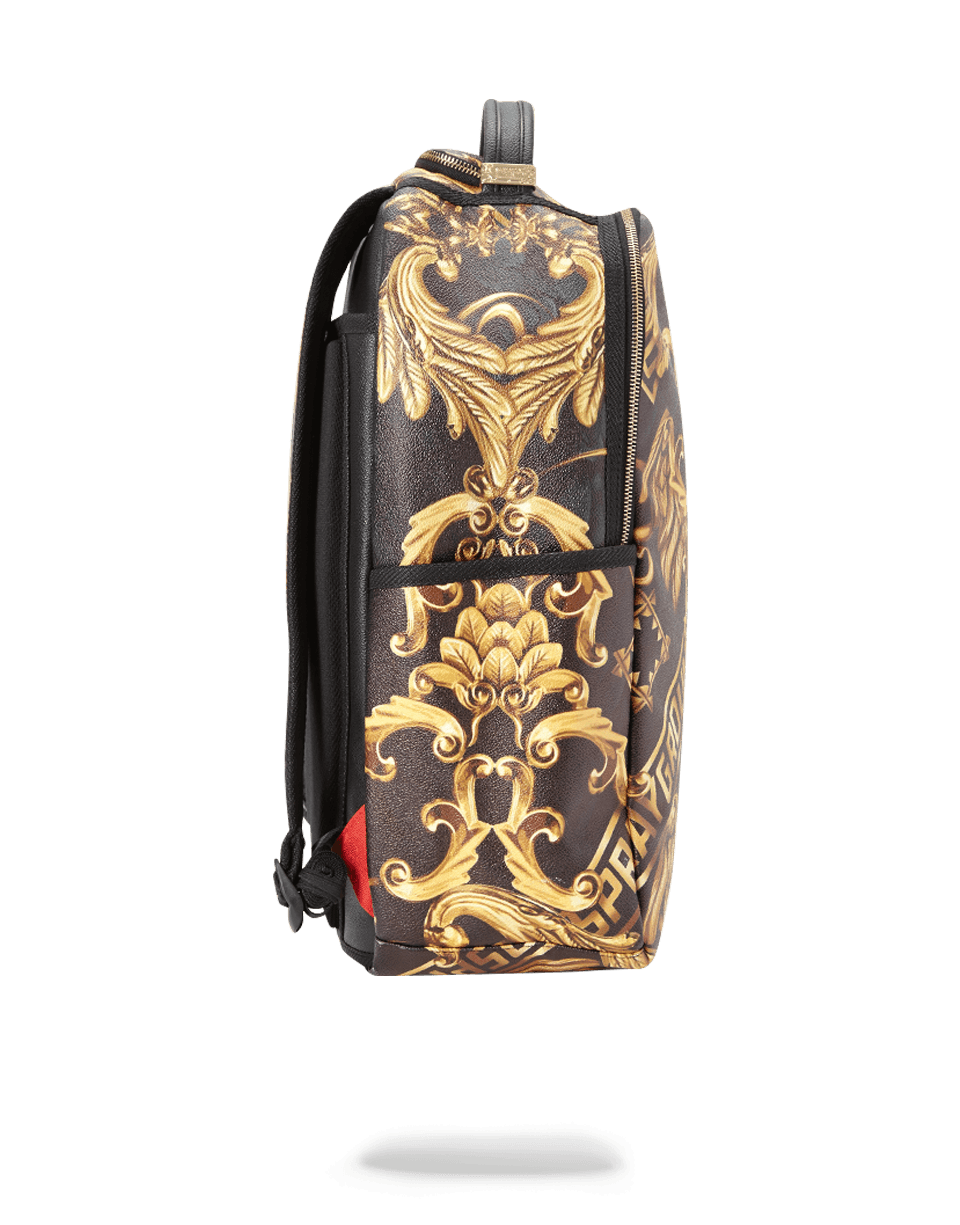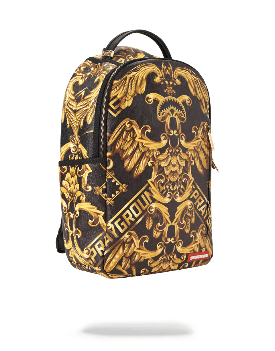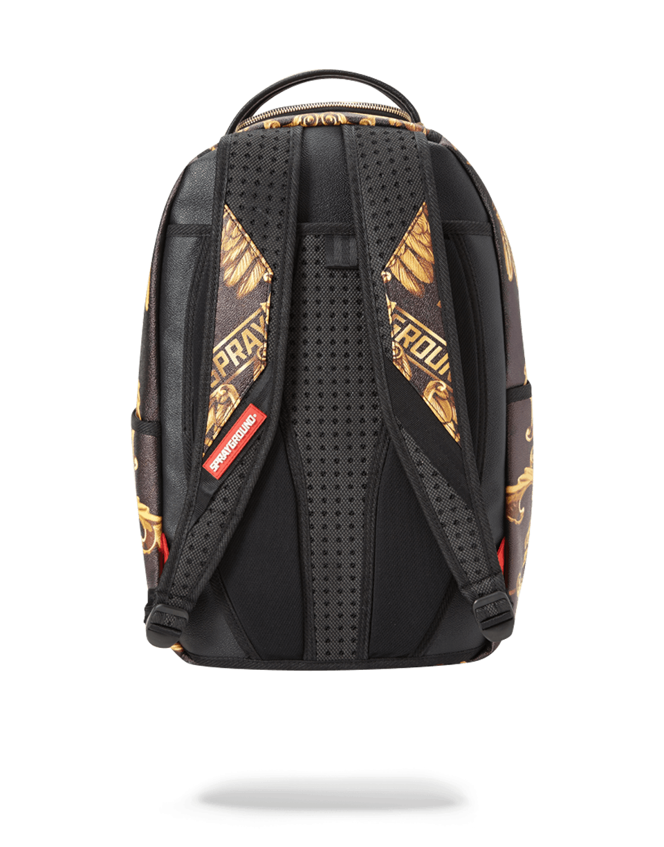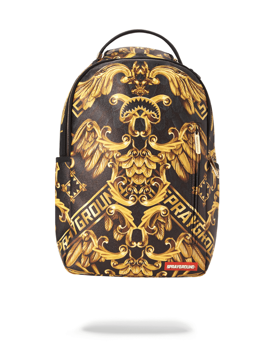 ExteriorDimensions: 18" x 6" x 11.5" ∙ Front zipper pocket ∙ Side pockets ∙ Zippered Stash pocket ∙ Ergonomic mesh back padding ∙ Adjustable Straps for custom sizing ∙ Nylon Zippers with Metal Hardware ∙ Metal "Sprayground Authentic" badge ∙ Slide through back sleeve connects to Carry on luggage to free your hands