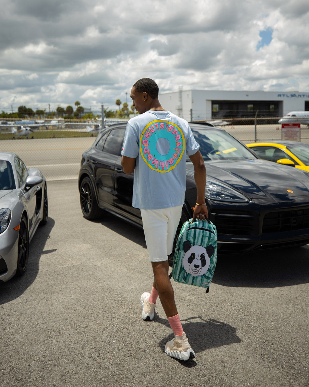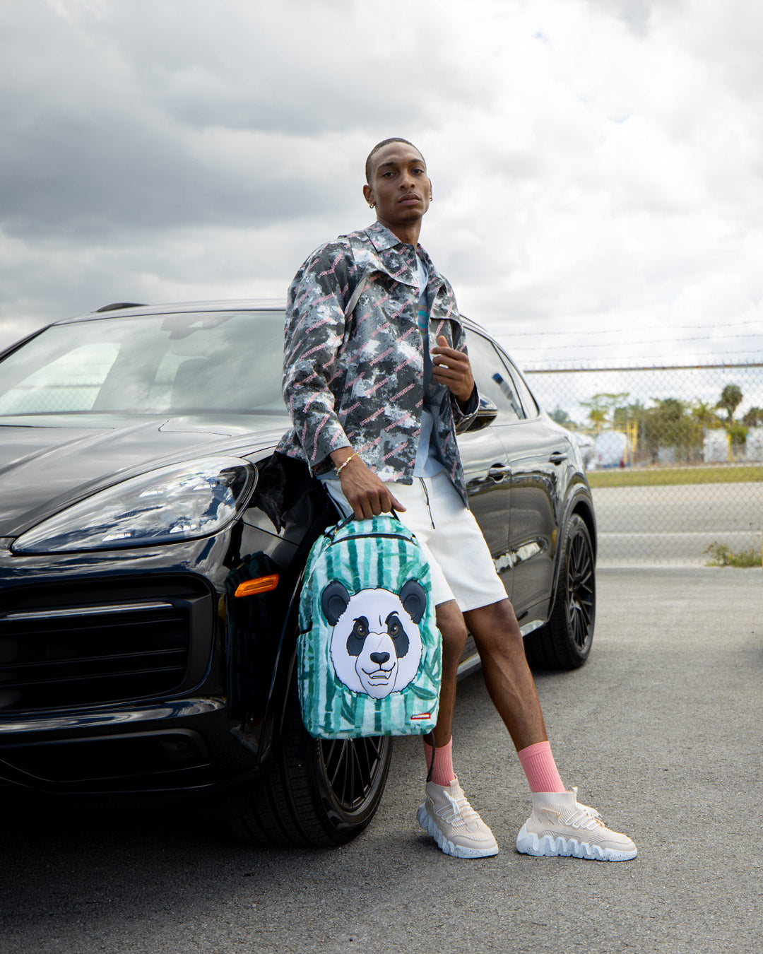 ExteriorDimensions: 18" x 6" x 11.5" ∙ Front zipper pocket ∙ Side pockets ∙ Zippered Stash pocket ∙ Ergonomic mesh back padding ∙ Adjustable Straps for custom sizing ∙ Nylon Zippers with Metal Hardware ∙ Metal "Sprayground Authentic" badge ∙ Slide through back sleeve connects to Carry on luggage to free your hands