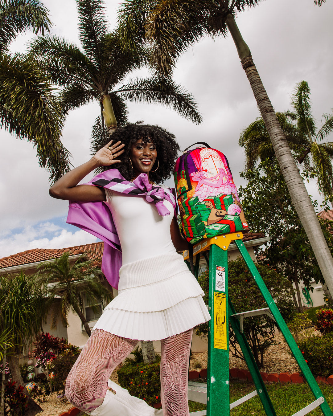 Dimensions: 18" x 6" x 11.5" • Front zipper pocket • Side pockets • Zippered Stash pocket • Separate velour sunglass compartment • Ergonomic mesh back padding • Adjustable Straps for custom sizing • Gold zippers with metal hardware • Metal "Sprayground Authentic" badge • Slide through back sleeve connects to carry-on luggage to free your hands