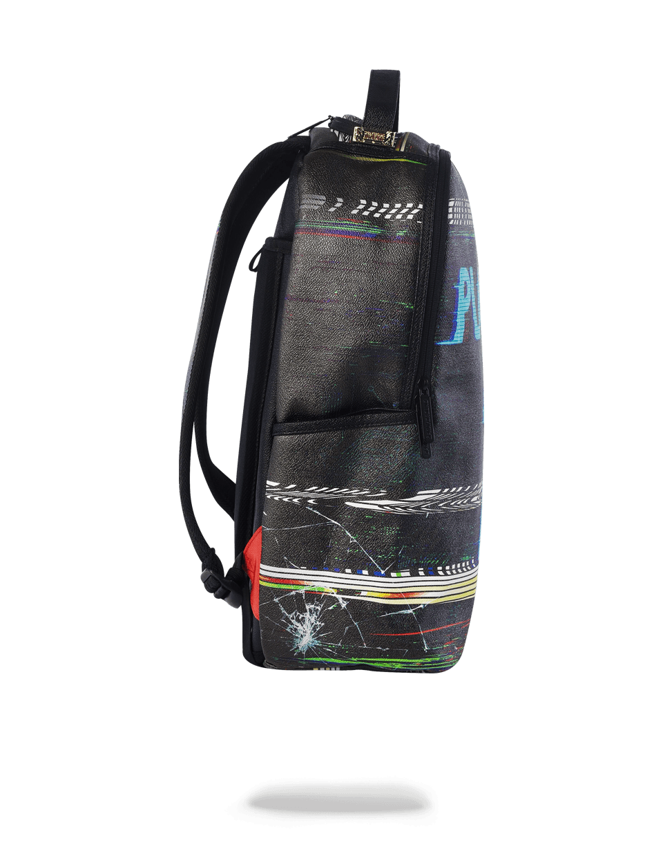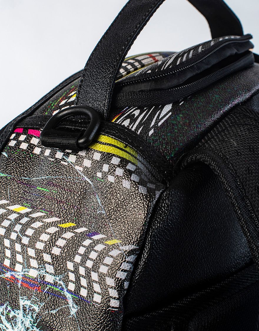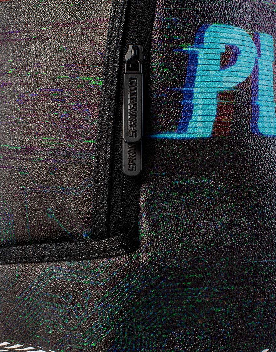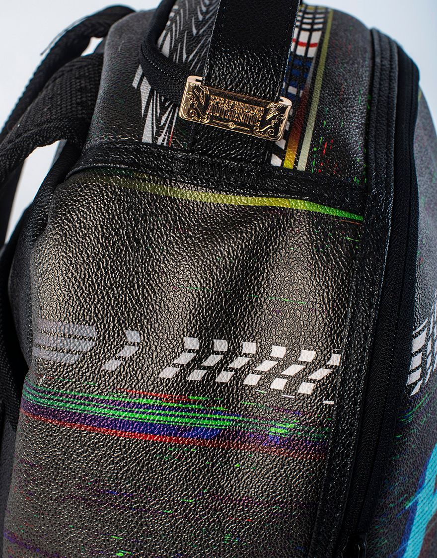 ExteriorDimensions: 18" x 6" x 11.5" ∙ Front zipper pocket ∙ Side pockets ∙ Zippered Stash pocket ∙ Ergonomic mesh back padding ∙ Adjustable Straps for custom sizing ∙ Nylon Zippers with Metal Hardware ∙ Metal "Sprayground Authentic" badge ∙ Slide through back sleeve connects to Carry on luggage to free your hands