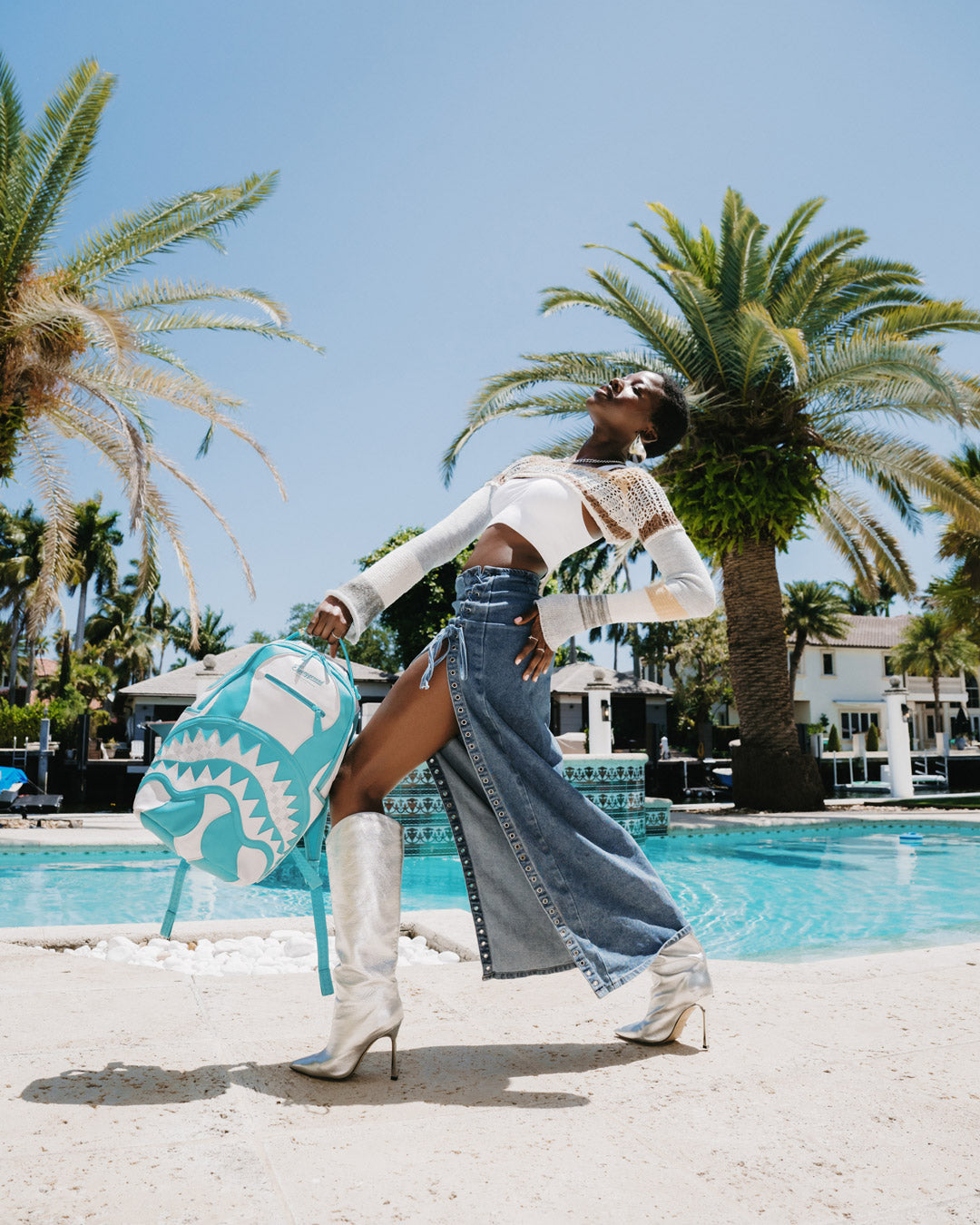Dimensions: 18" x 6" x 11.5" • Front zipper pocket • Side pockets • Zippered Stash pocket • Separate velour sunglass compartment • Ergonomic mesh back padding • Adjustable Straps for custom sizing • Gold zippers with metal hardware • Metal "Sprayground Authentic" badge • Slide through back sleeve connects to carry-on luggage to free your hands