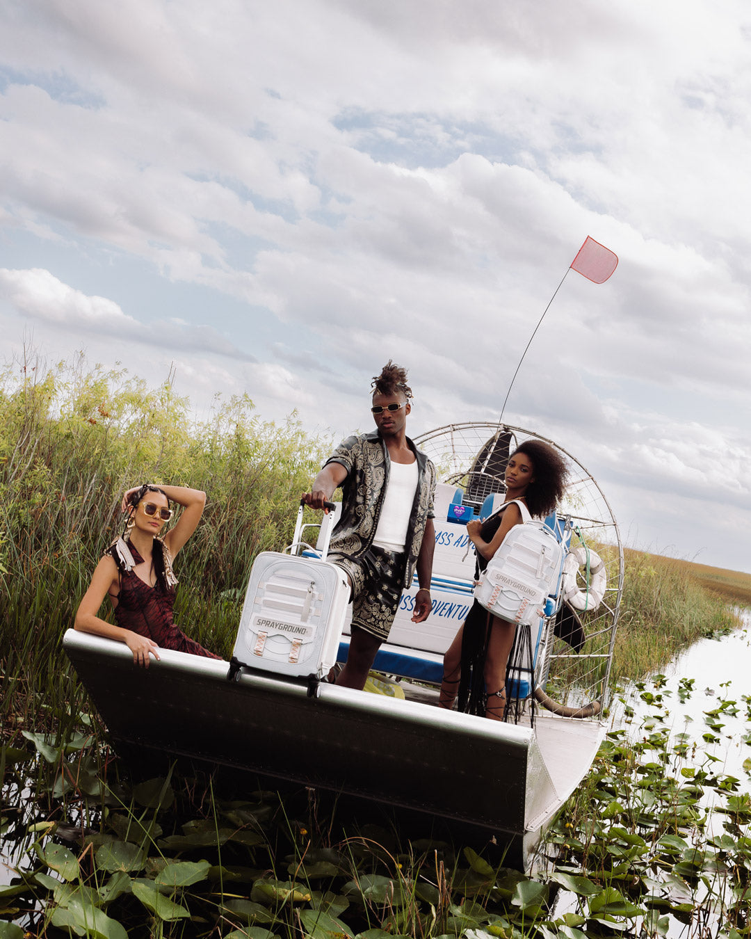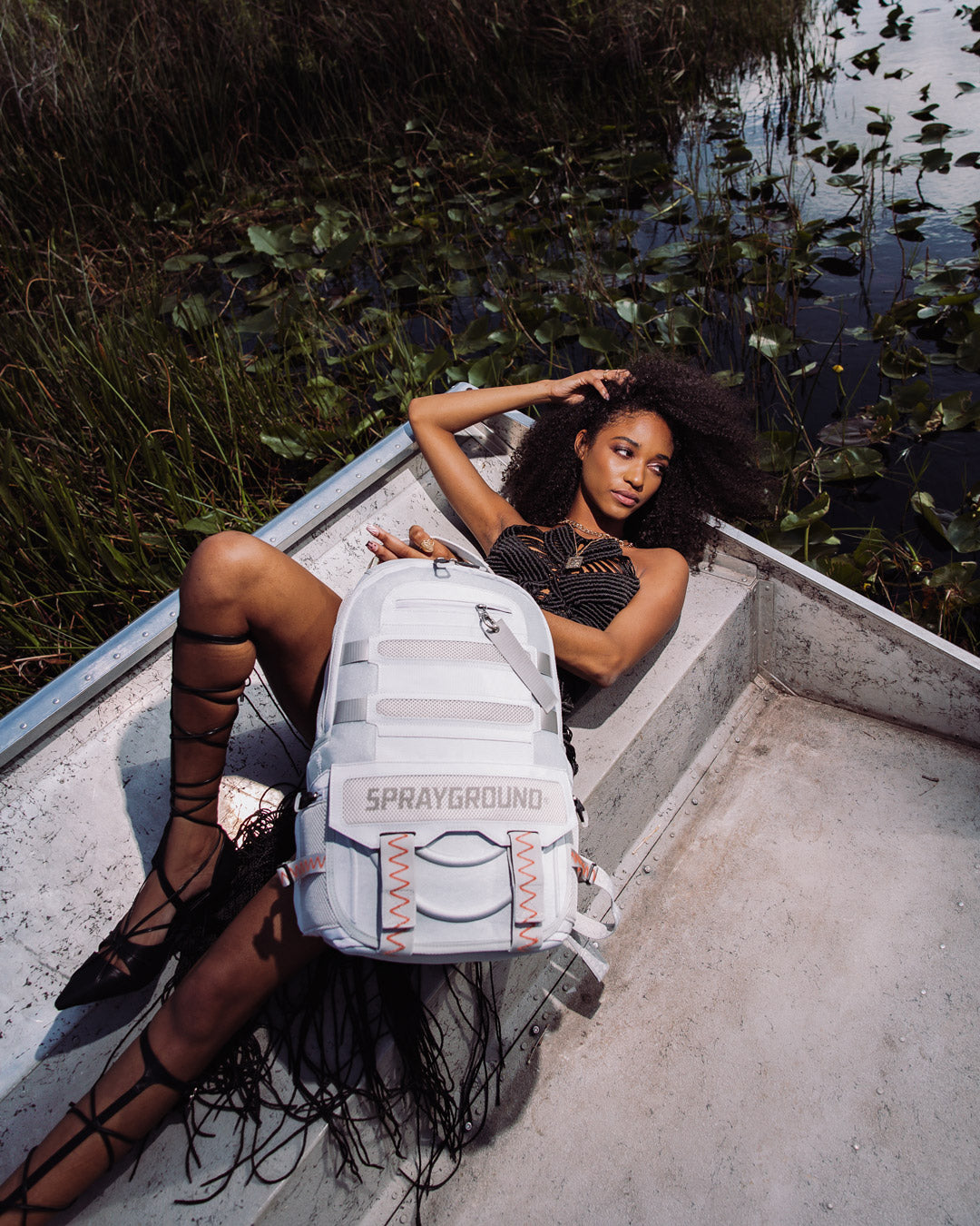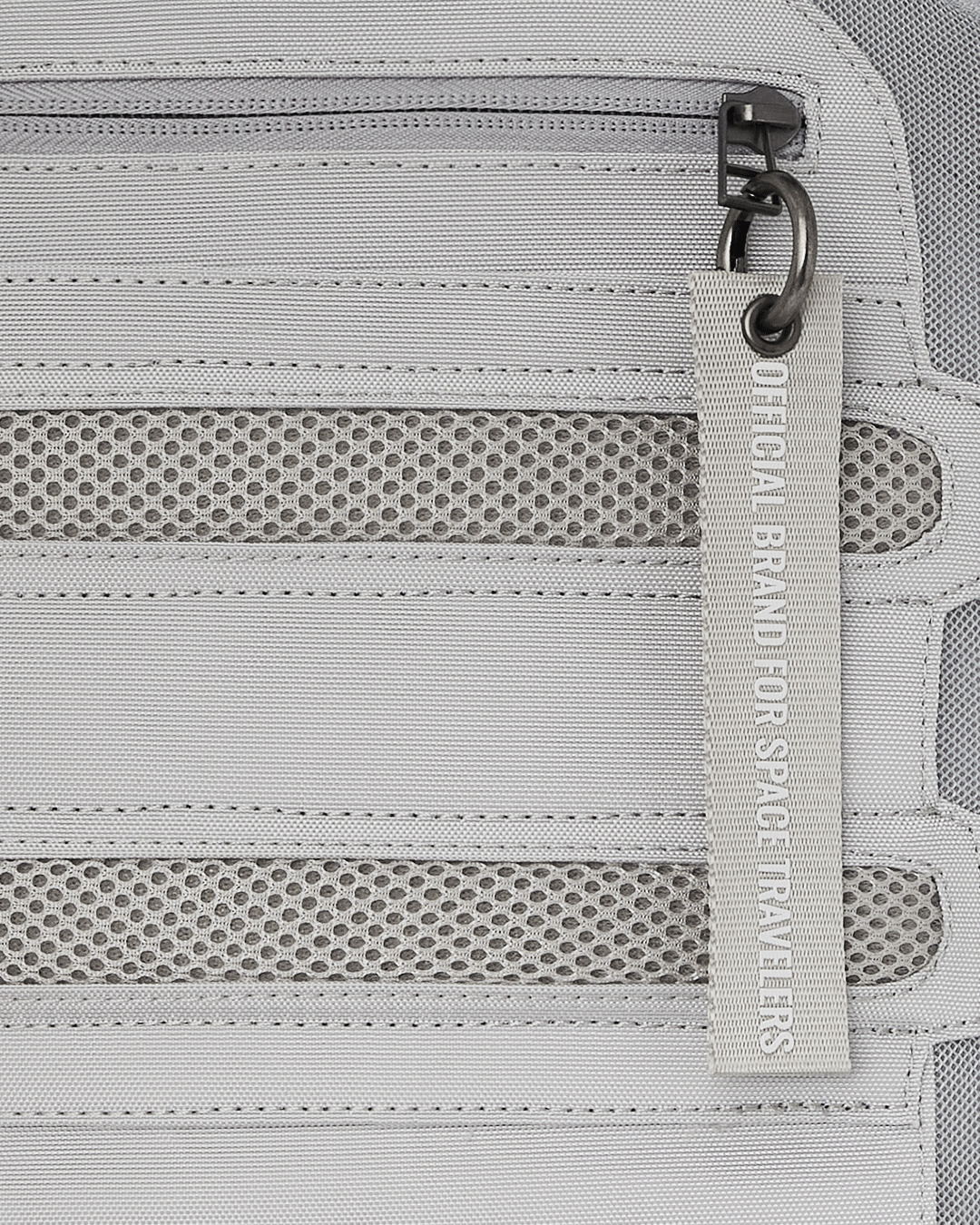 Dimensions: 18" x 6" x 11.5" • Front zipper pocket • Side pockets • Zippered Stash pocket • Separate velour sunglass compartment • Ergonomic mesh back padding • Adjustable Straps for custom sizing • Gold zippers with metal hardware • Metal "Sprayground Authentic" badge • Slide through back sleeve connects to carry-on luggage to free your hands