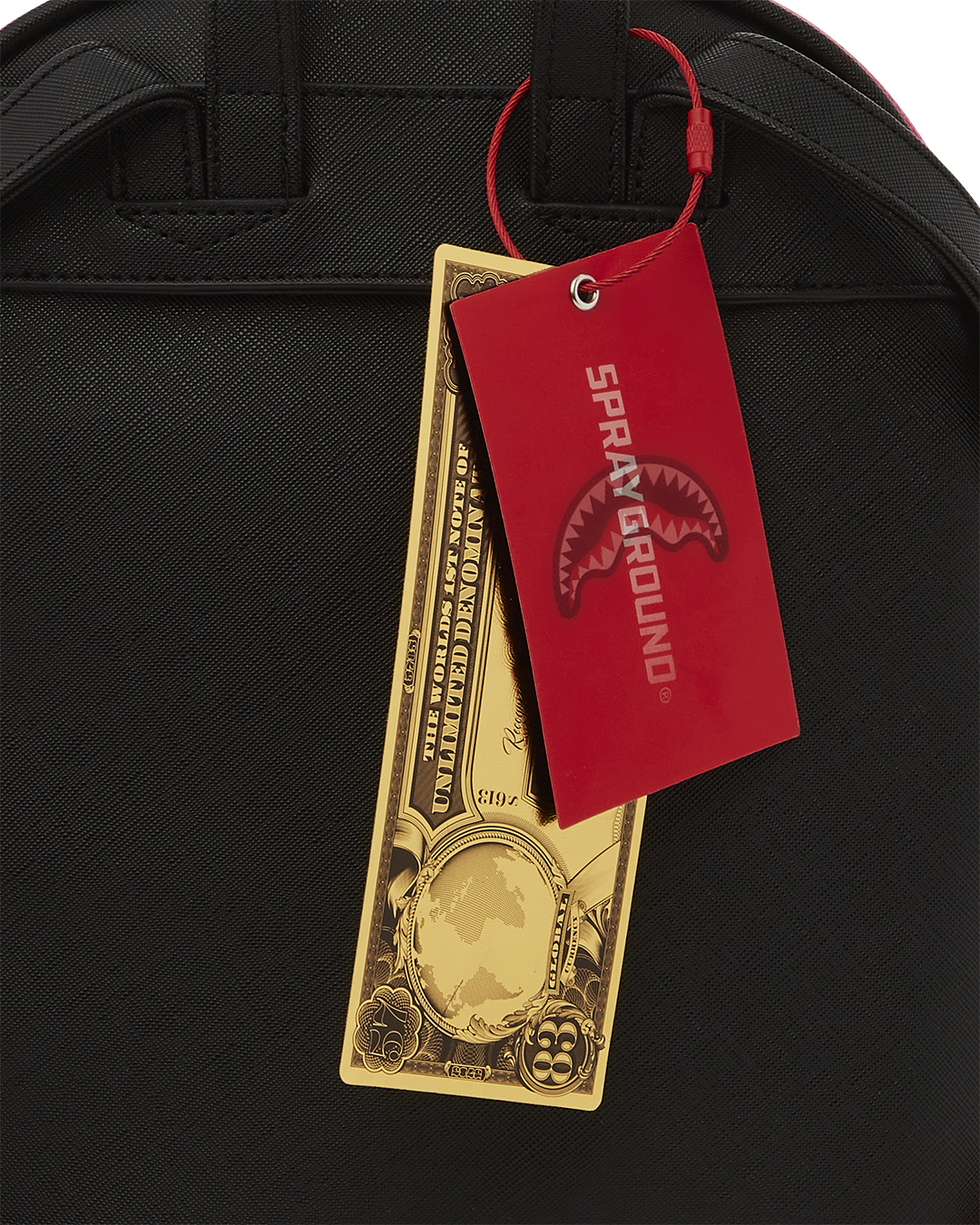 Dimensions: 10" x 5" x 11.5" • Two large main zippered compartments • Side pockets • Zippered Stash pocket • Adjustable straps for custom sizing • Gold zippers with metal hardware