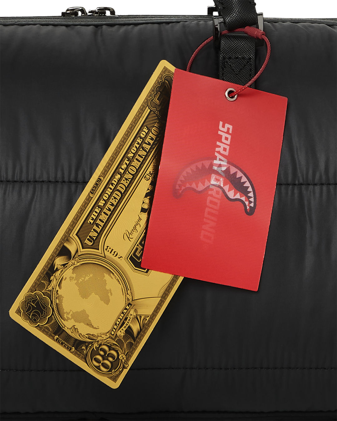 Dimensions: 8" x 7.5" x 13"• Metal zipper pocket• Back Zippers •Zippered sneaker pocket • gold zippers • Adjustable Straps for custom sizing •Metal Zippers with Metal Hardware • bag of Sprayground money