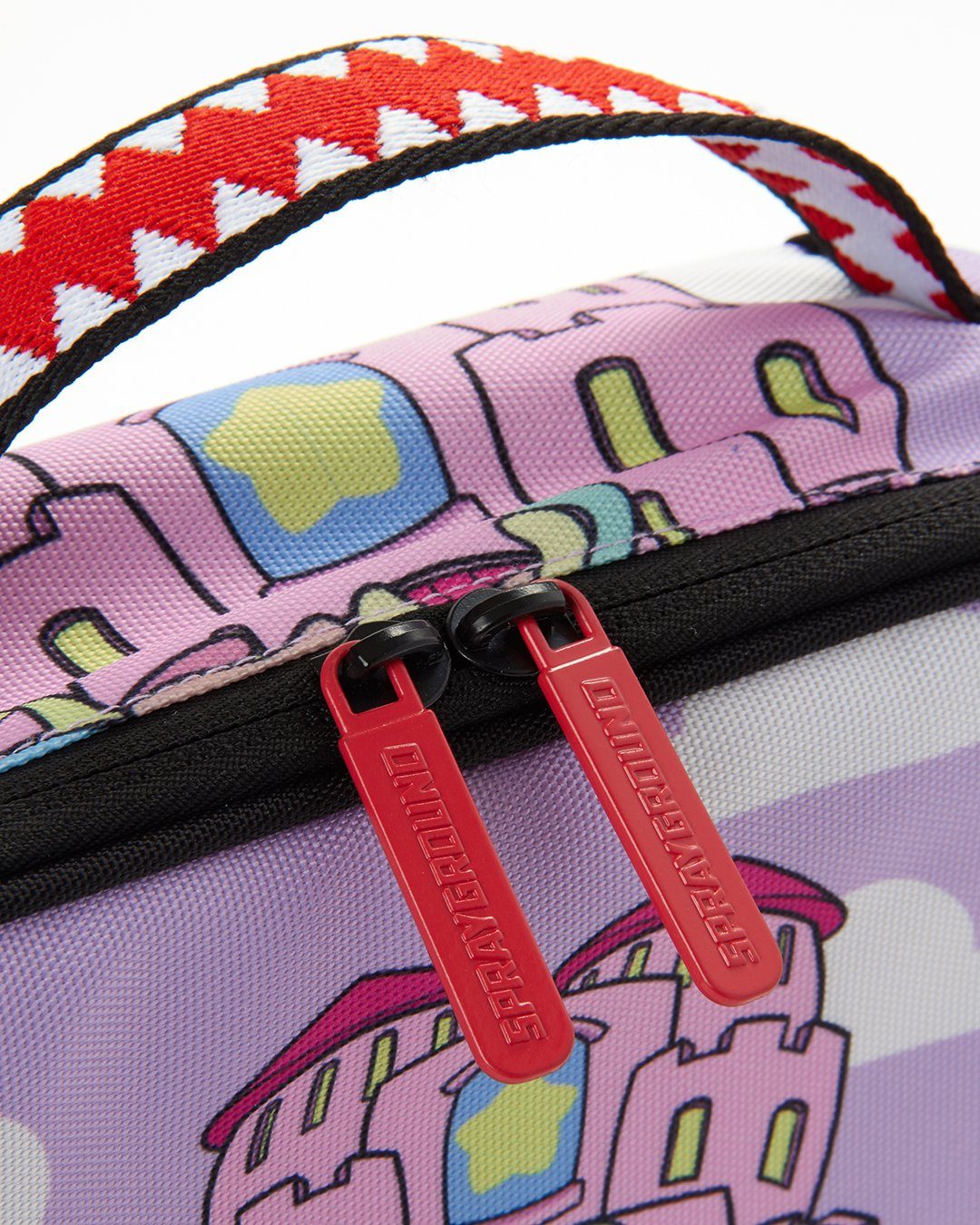 ExteriorDimensions: 8.5" x 3" x 8.5" • Double zipper opening • Top handle • Removeable side handle • Red zippers with metal hardware • Zippered stash pocket