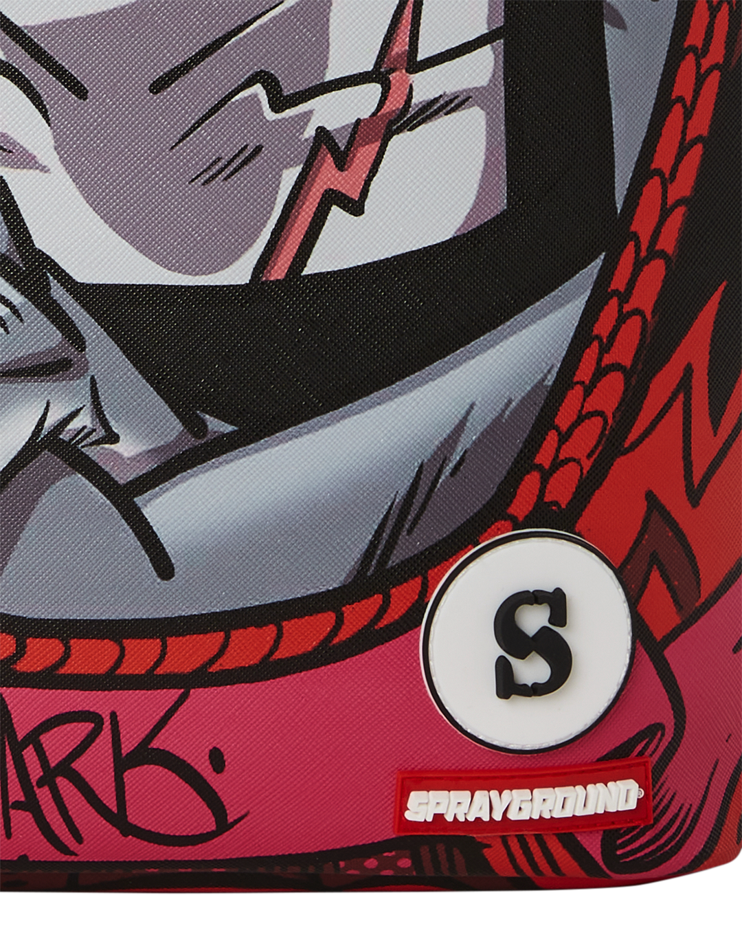 Dimensions: 18" x 6" x 11.5" • Front zipper pocket • Side pockets • Zippered Stash pocket • Separate velour sunglass compartment • Ergonomic mesh back padding • Adjustable Straps for custom sizing • Gold zippers with metal hardware • Metal "Sprayground Authentic" badge • Slide through back sleeve connects to carry-on luggage to free your hands