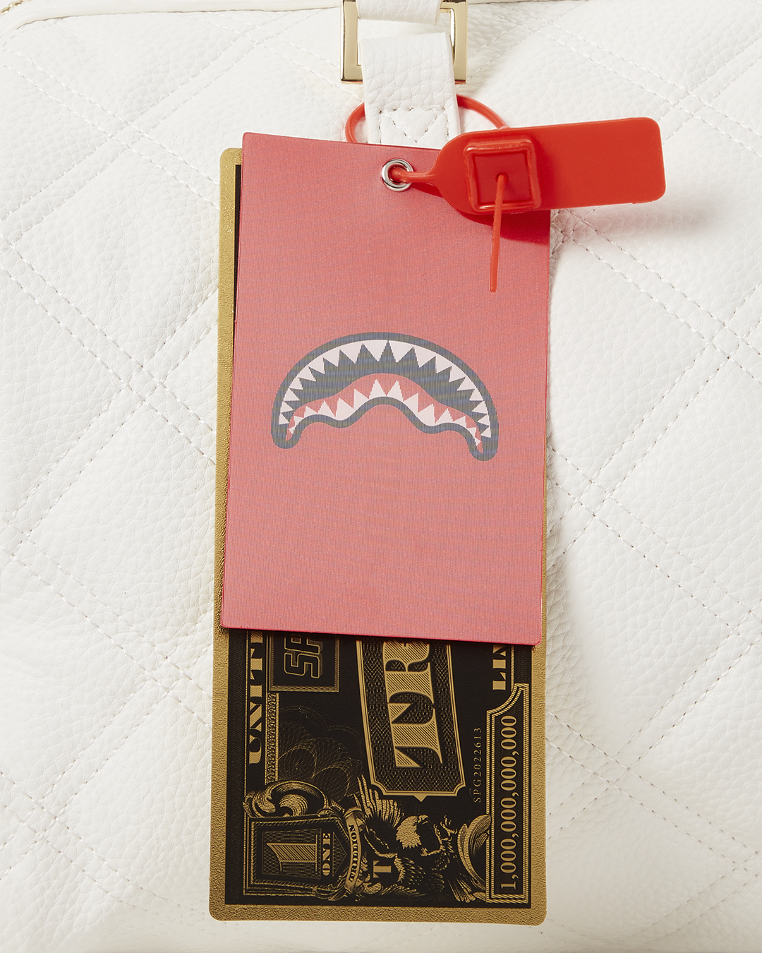 Dimensions: 20" x 10" x 10.75" • Metal zipper pocket• Back Zippers •Zippered sneaker pocket • gold zippers • Adjustable Straps for custom sizing •Metal Zippers with Metal Hardware • bag of Sprayground money