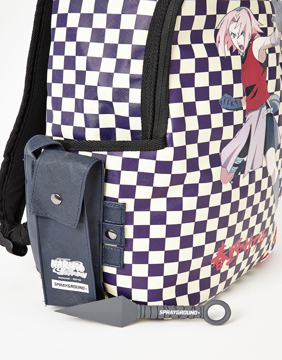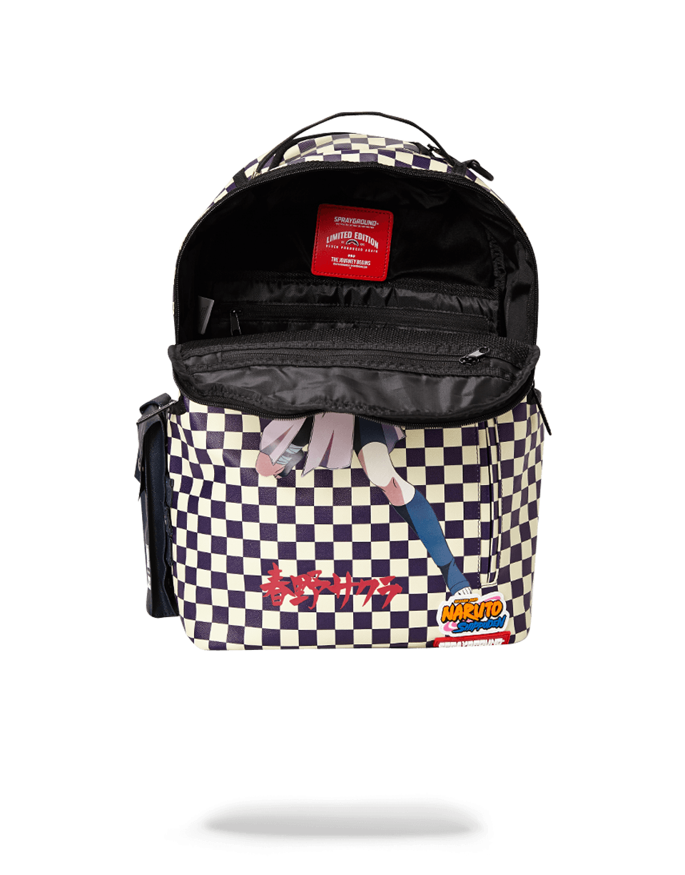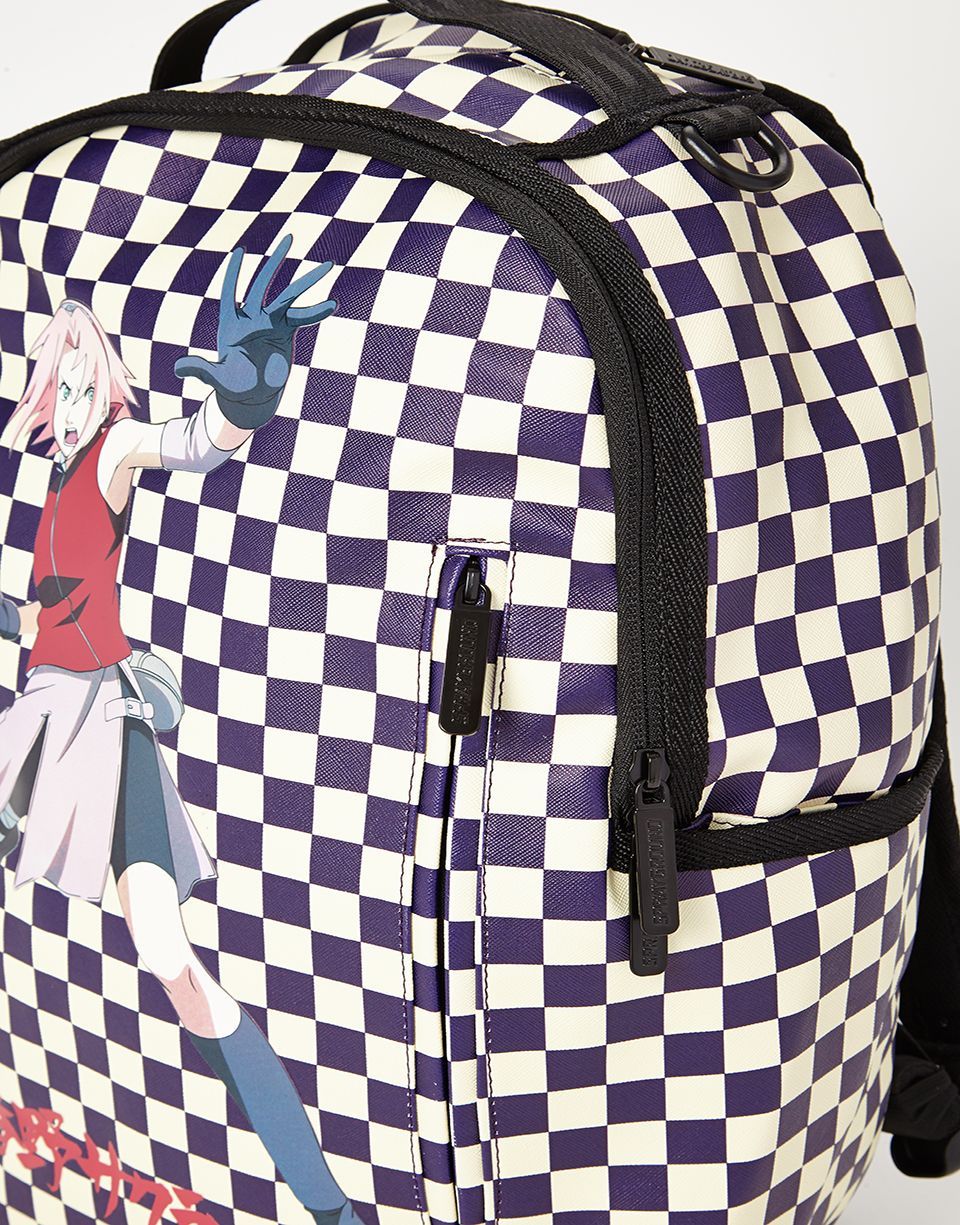 ExteriorDimensions: 18" x 6" x 11.5" ∙ Front zipper pocket ∙ Side pockets ∙ Zippered Stash pocket ∙ Ergonomic mesh back padding ∙ Adjustable Straps for custom sizing ∙ Nylon Zippers with Metal Hardware ∙ Metal "Sprayground Authentic" badge ∙ Slide through back sleeve connects to Carry on luggage to free your hands