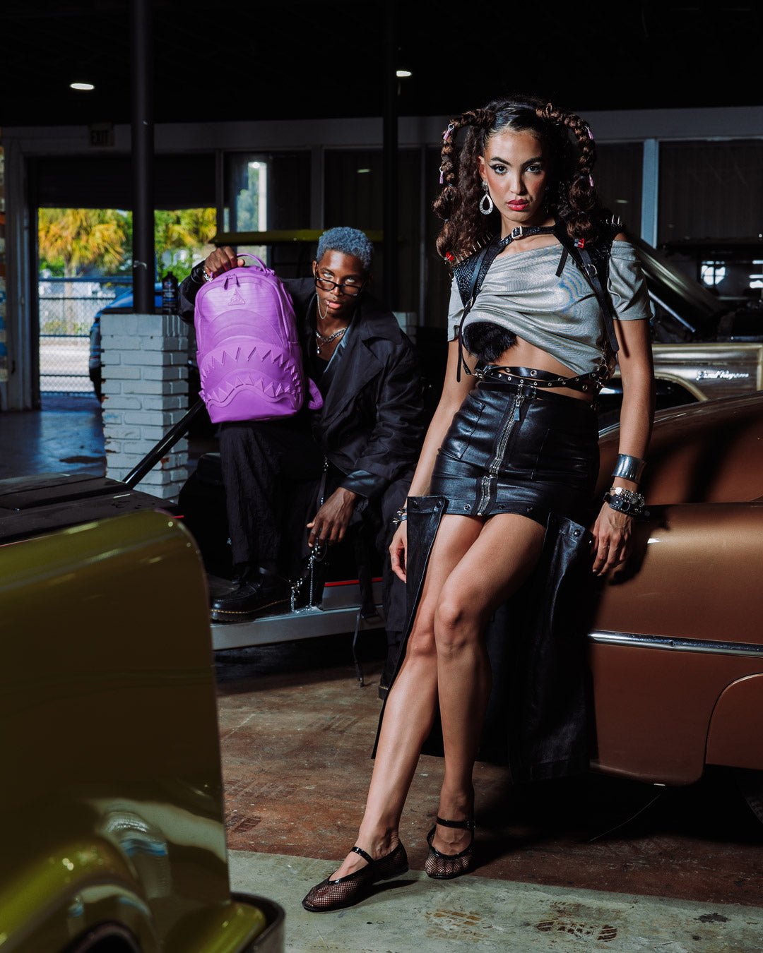 Dimensions: 18" x 6" x 11.5" • Front zipper pocket • Side pockets • Zippered Stash pocket • Separate velour sunglass compartment • Ergonomic mesh back padding • Adjustable Straps for custom sizing • Gold zippers with metal hardware • Metal "Sprayground Authentic" badge • Slide through back sleeve connects to carry-on luggage to free your hands