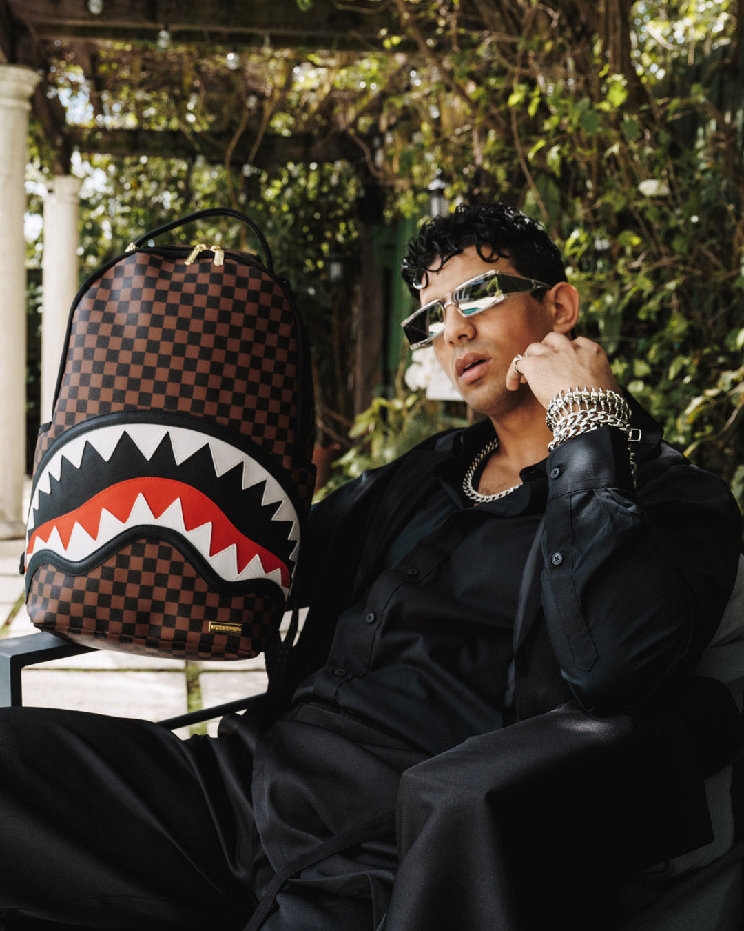 Dimensions: 18" x 6" x 11.5" • Front zipper pocket • Side pockets • Zippered Stash pocket • Separate velour sunglass compartment • Ergonomic mesh back padding • Adjustable Straps for custom sizing • Gold zippers with metal hardware • Metal "Sprayground Authentic" badge • Slide through back sleeve connects to carry-on luggage to free your hands