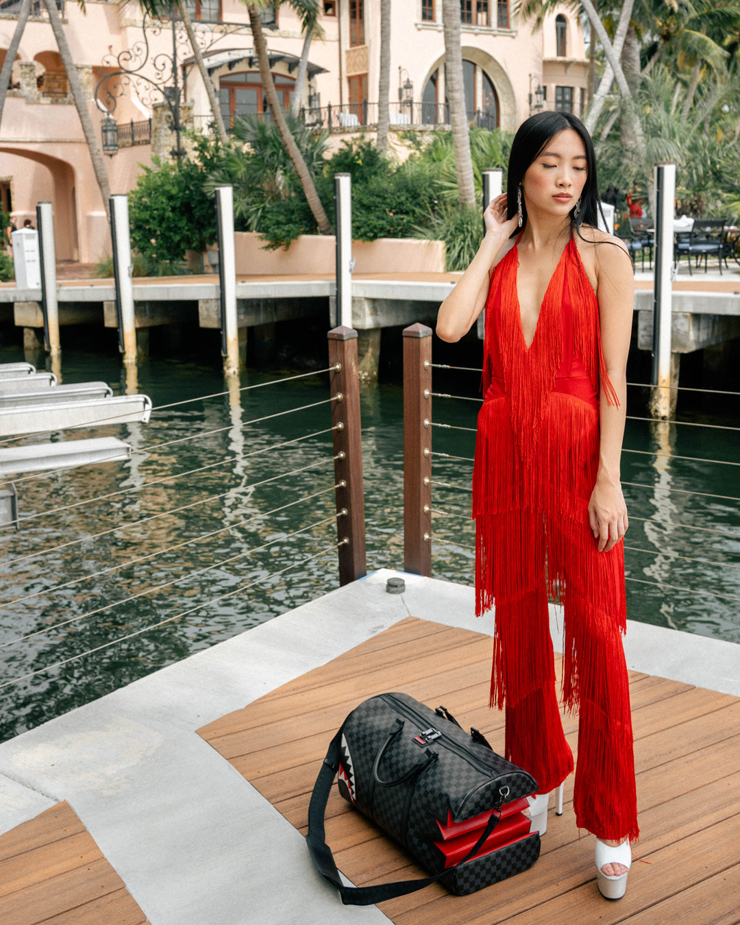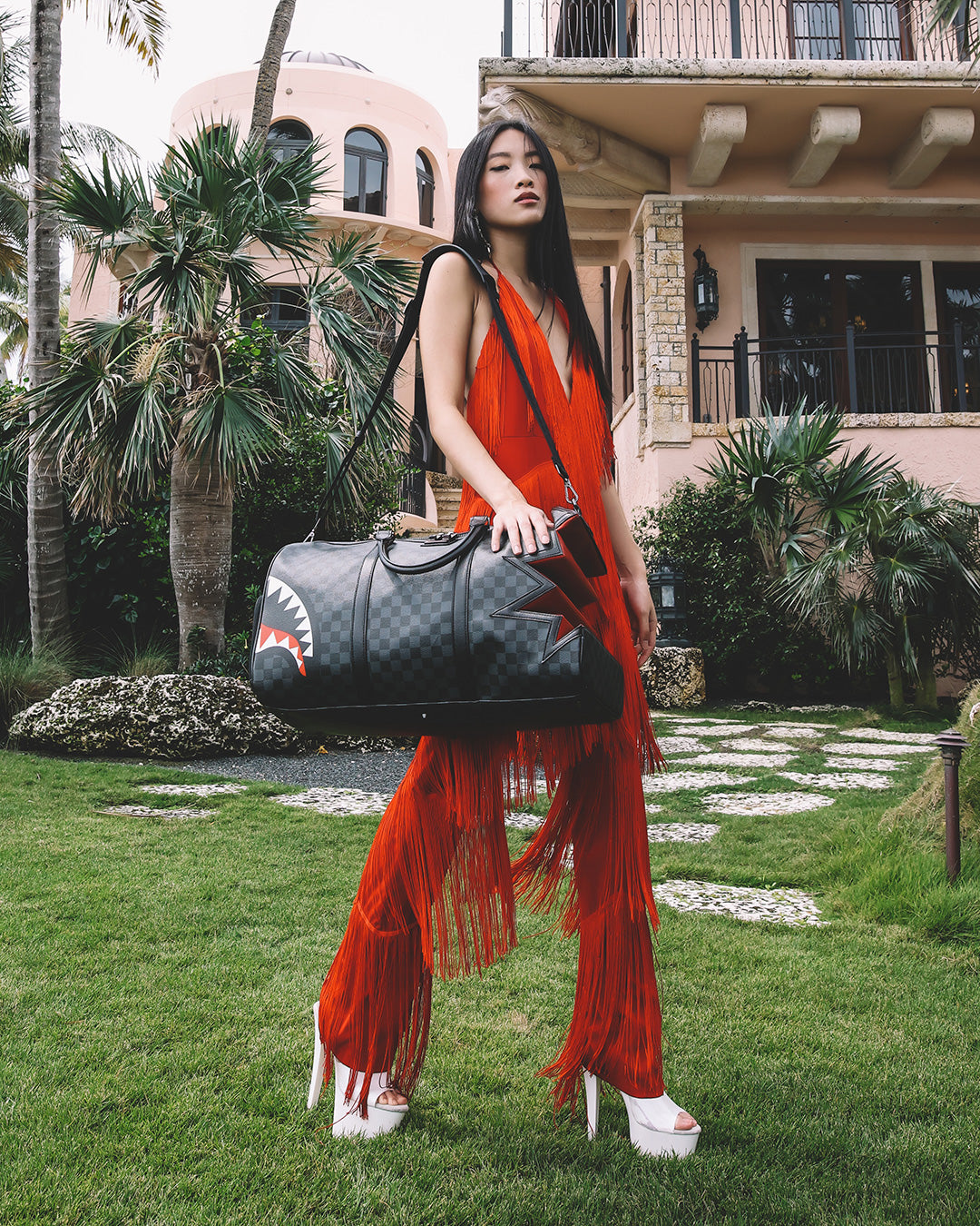 Dimensions: 20" x 10" x 10.75" • Metal zipper pocket• Back Zippers •Zippered sneaker pocket • gold zippers • Adjustable Straps for custom sizing •Metal Zippers with Metal Hardware • bag of Sprayground money