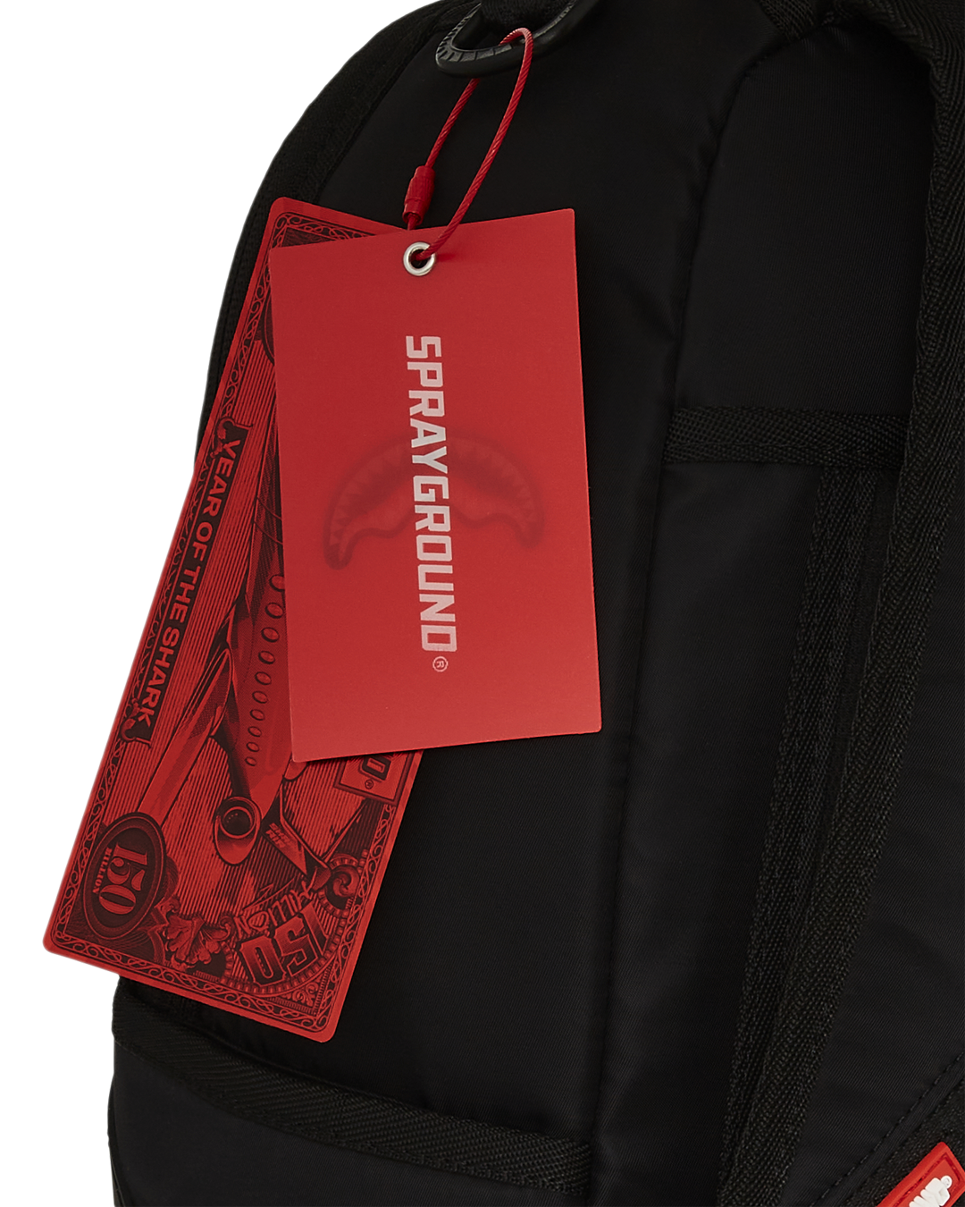 Dimensions: 18" x 6" x 11.5" • Front zipper pocket • Side pockets • Zippered Stash pocket • Separate velour sunglass compartment • Ergonomic mesh back padding • Adjustable Straps for custom sizing • Gold zippers with metal hardware • Metal "Sprayground Authentic" badge • Slide through back sleeve connects to carry-on luggage to free your hands