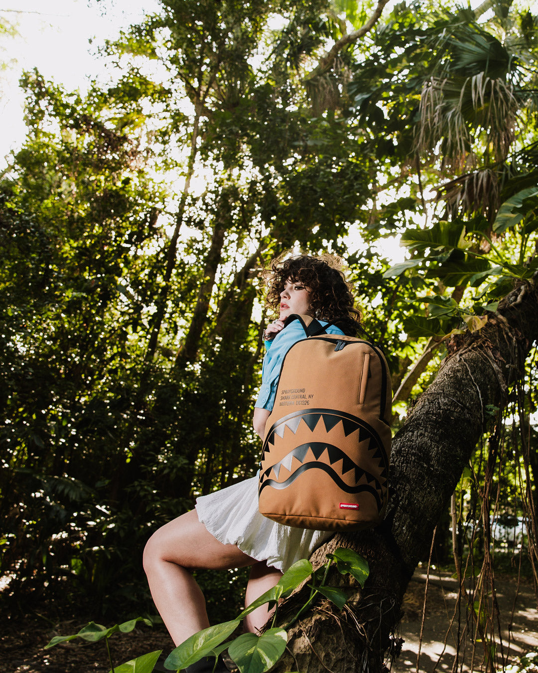 Dimensions: 18" x 6" x 11.5" • Front zipper pocket • Side pockets • Zippered Stash pocket • Separate velour sunglass compartment • Ergonomic mesh back padding • Adjustable Straps for custom sizing • Gold zippers with metal hardware • Metal "Sprayground Authentic" badge • Slide through back sleeve connects to carry-on luggage to free your hands