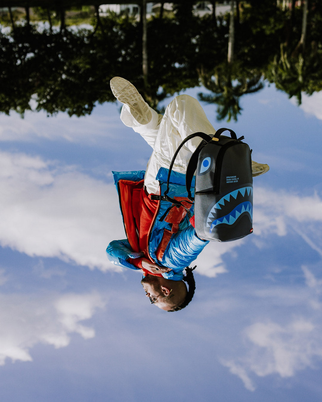 Dimensions: 18" x 6" x 11.5" • Front zipper pocket • Side pockets • Zippered Stash pocket • Separate velour sunglass compartment • Ergonomic mesh back padding • Adjustable Straps for custom sizing • Gold zippers with metal hardware • Metal "Sprayground Authentic" badge • Slide through back sleeve connects to carry-on luggage to free your hands