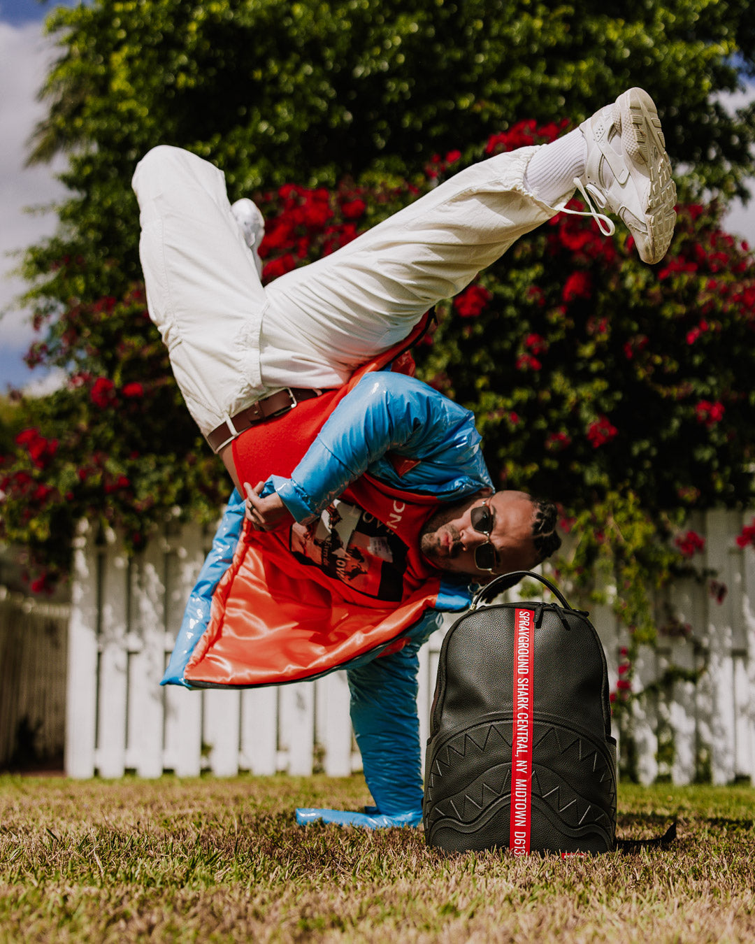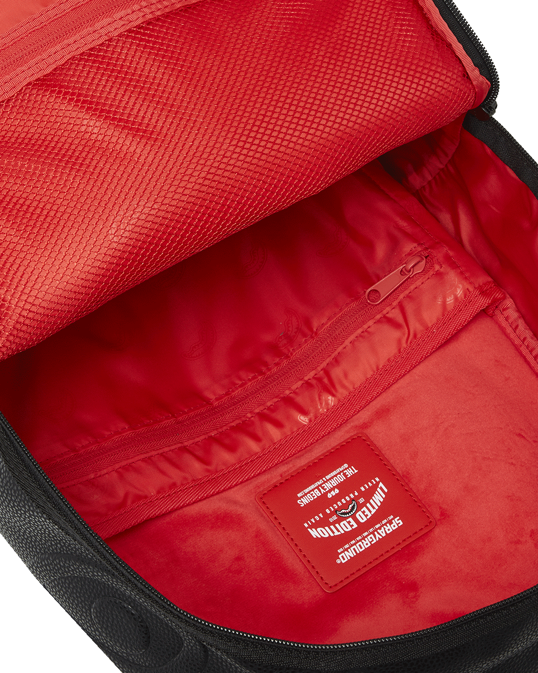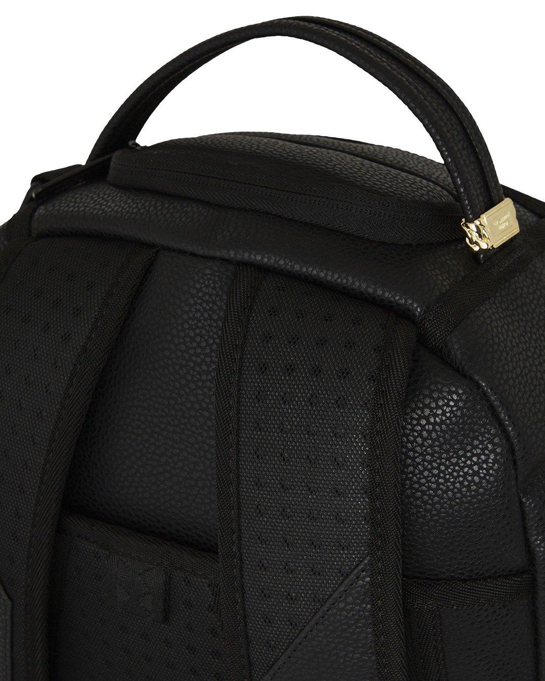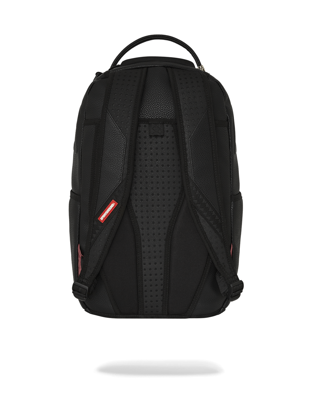 Dimensions: 18" x 6" x 11.5" • Front zipper pocket • Side pockets • Zippered Stash pocket • Separate velour sunglass compartment • Ergonomic mesh back padding • Adjustable Straps for custom sizing • Gold zippers with metal hardware • Metal "Sprayground Authentic" badge • Slide through back sleeve connects to carry-on luggage to free your hands