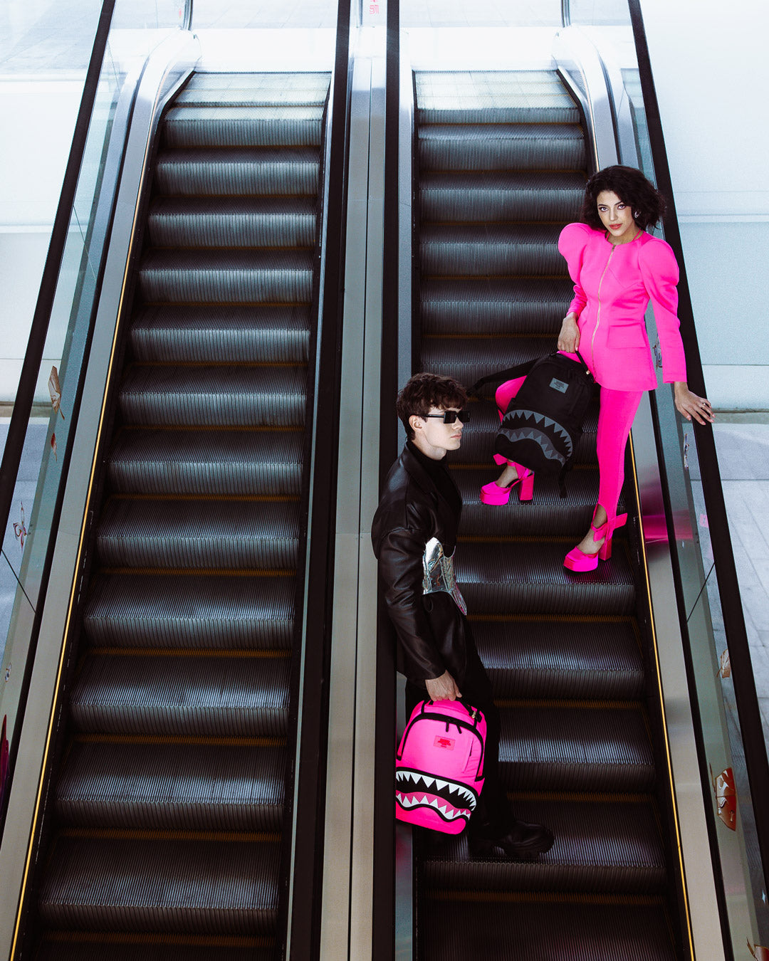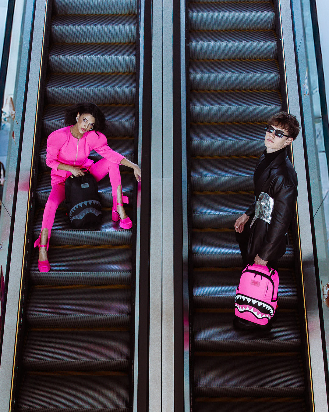 Dimensions: 18" x 6" x 11.5" • Front zipper pocket • Side pockets • Zippered Stash pocket • Separate velour sunglass compartment • Ergonomic mesh back padding • Adjustable Straps for custom sizing • Gold zippers with metal hardware • Metal "Sprayground Authentic" badge • Slide through back sleeve connects to carry-on luggage to free your hands
