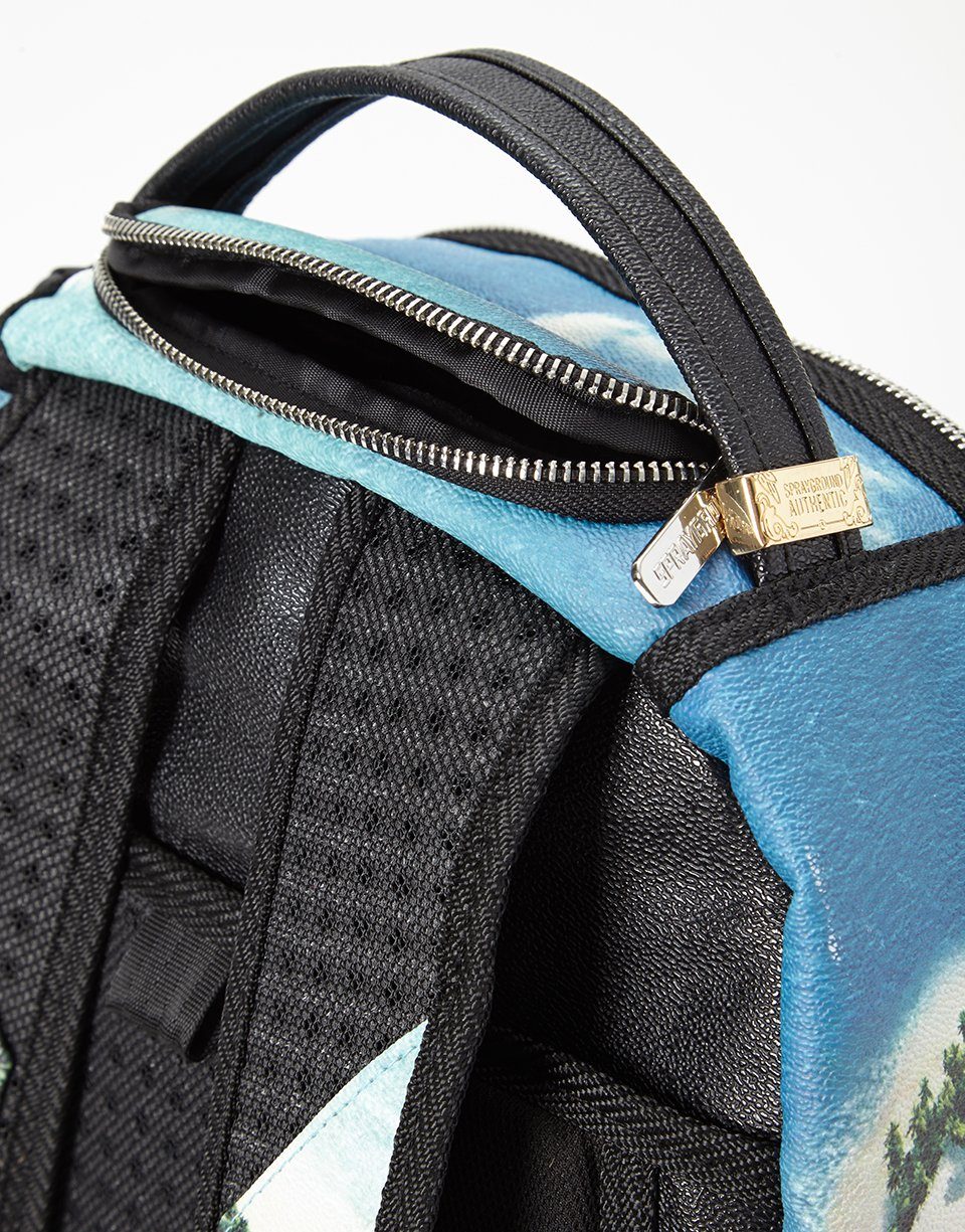 ExteriorDimensions: 18" x 6" x 11.5" ∙ Front zipper pocket ∙ Side pockets ∙ Zippered Stash pocket ∙ Ergonomic mesh back padding ∙ Adjustable Straps for custom sizing ∙ Nylon Zippers with Metal Hardware ∙ Metal "Sprayground Authentic" badge ∙ Slide through back sleeve connects to Carry on luggage to free your hands ∙ Bag of Sprayground Money