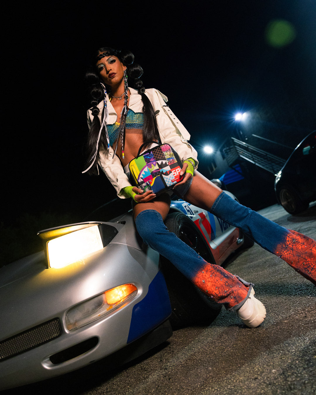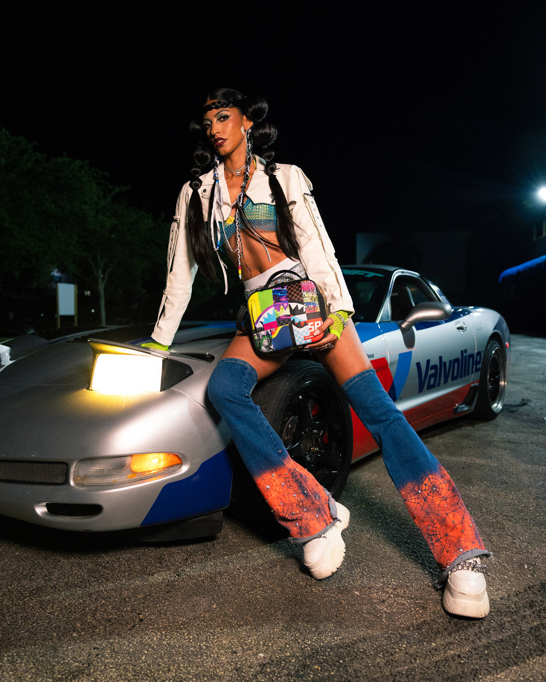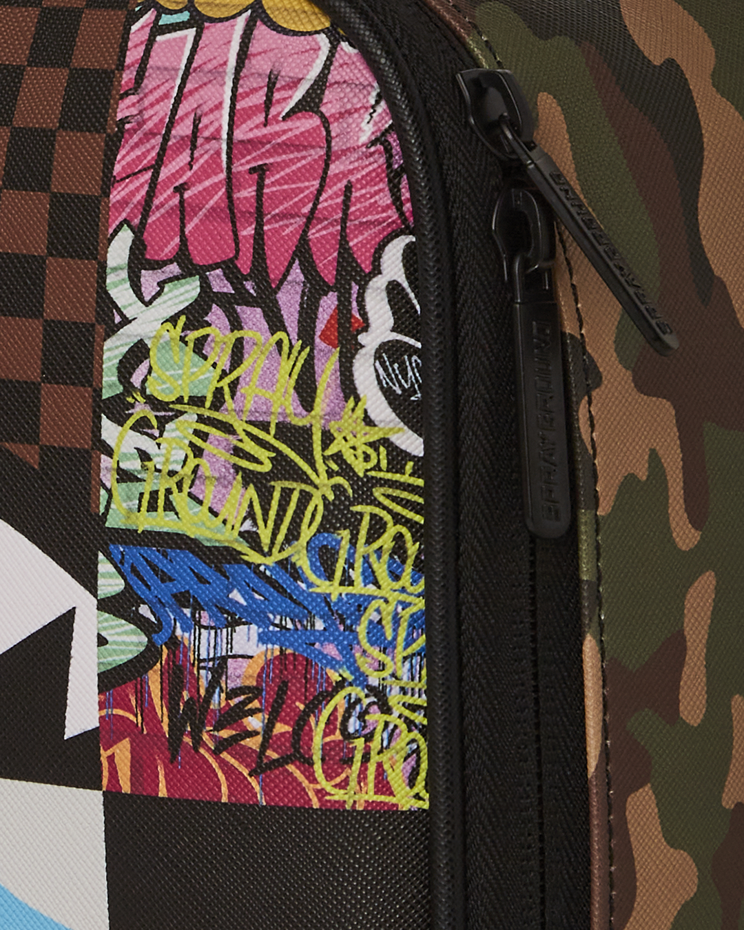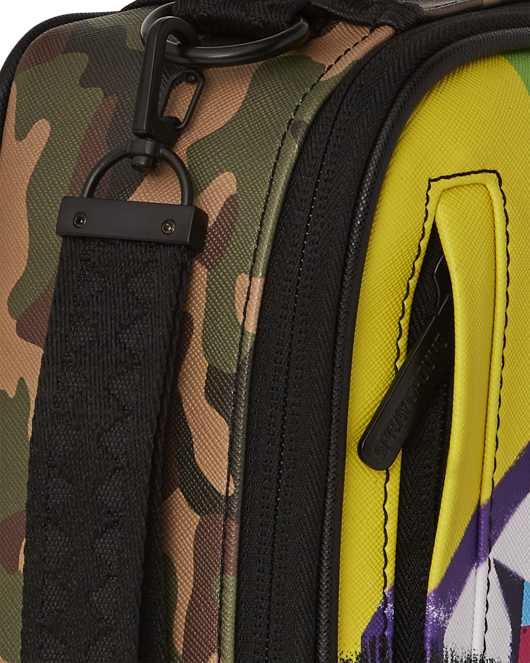 ExteriorDimensions: 8.5" x 3" x 8.5" • Double zipper opening • Top handle • Removable side handle • Red zippers with metal hardware • Zippered stash pocket