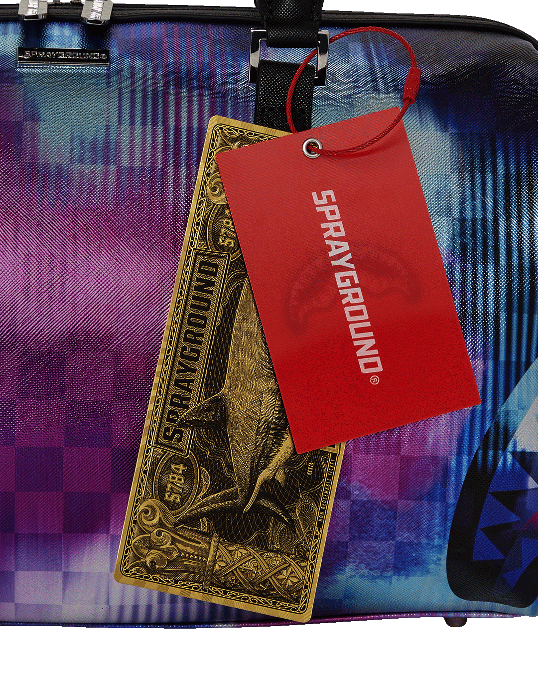 Dimensions: 8" x 7.5" x 13"• Metal zipper pocket• Back Zippers •Zippered sneaker pocket • gold zippers • Adjustable Straps for custom sizing •Metal Zippers with Metal Hardware • bag of Sprayground money