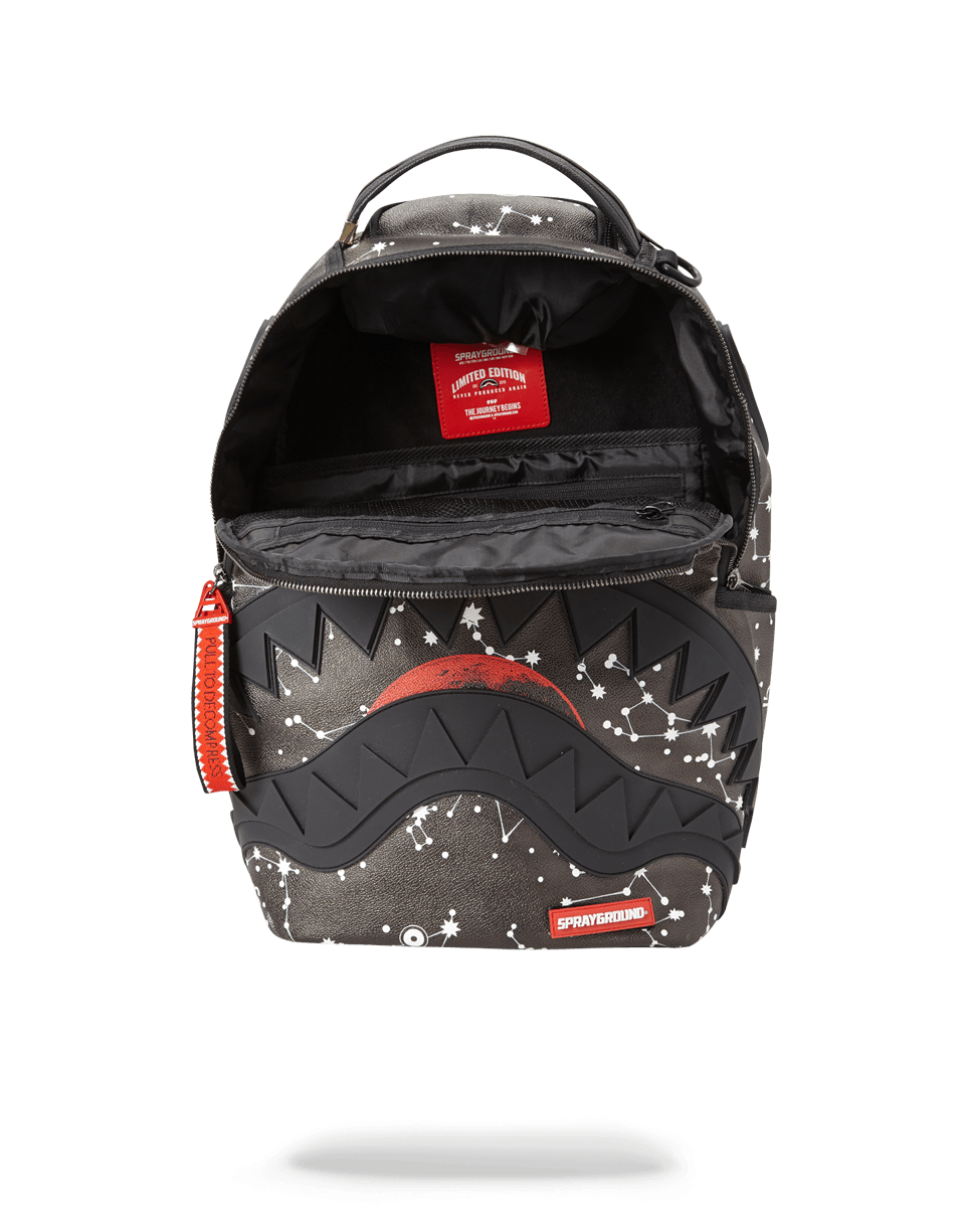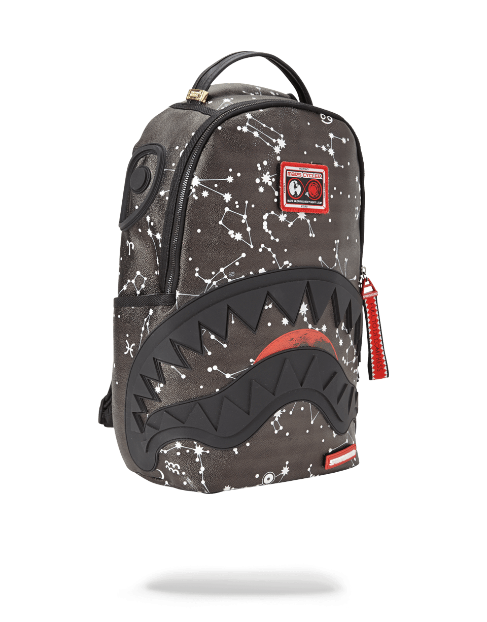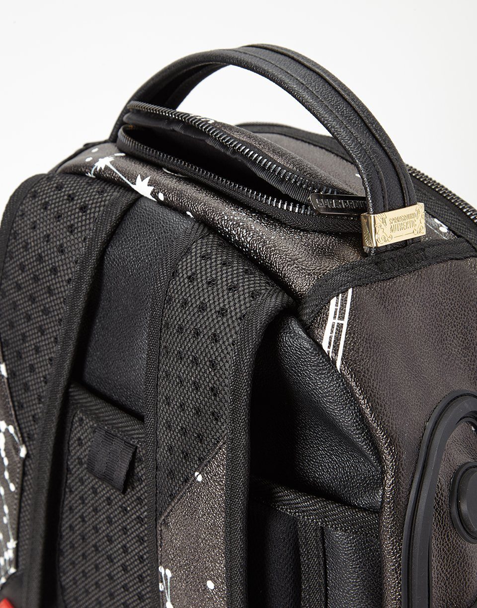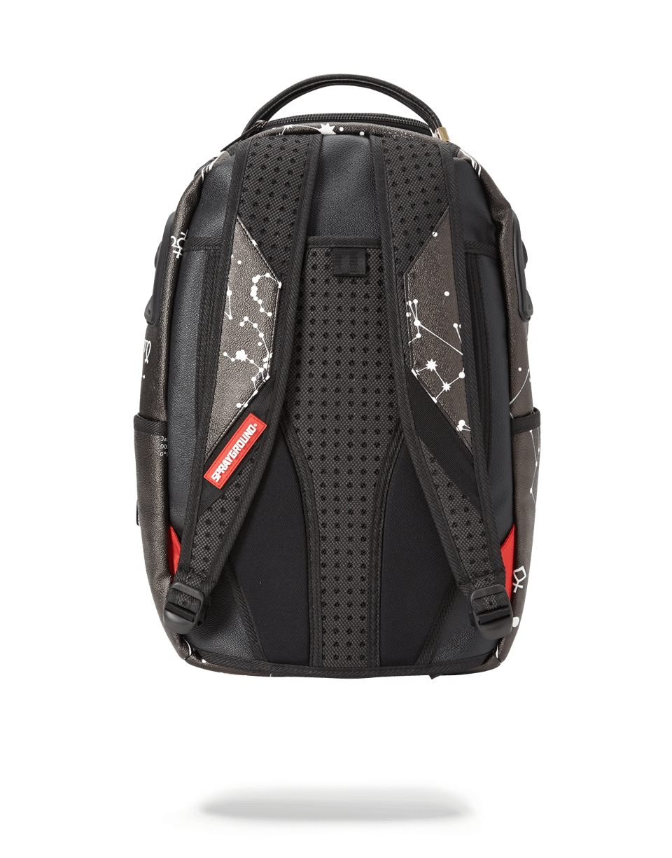 ExteriorDimensions: 18" x 6" x 11.5" ∙ Front zipper pocket ∙ Side pockets ∙ Zippered Stash pocket ∙ Ergonomic mesh back padding ∙ Adjustable Straps for custom sizing ∙ Nylon Zippers with Metal Hardware ∙ Metal "Sprayground Authentic" badge ∙ Slide through back sleeve connects to Carry on luggage to free your hands