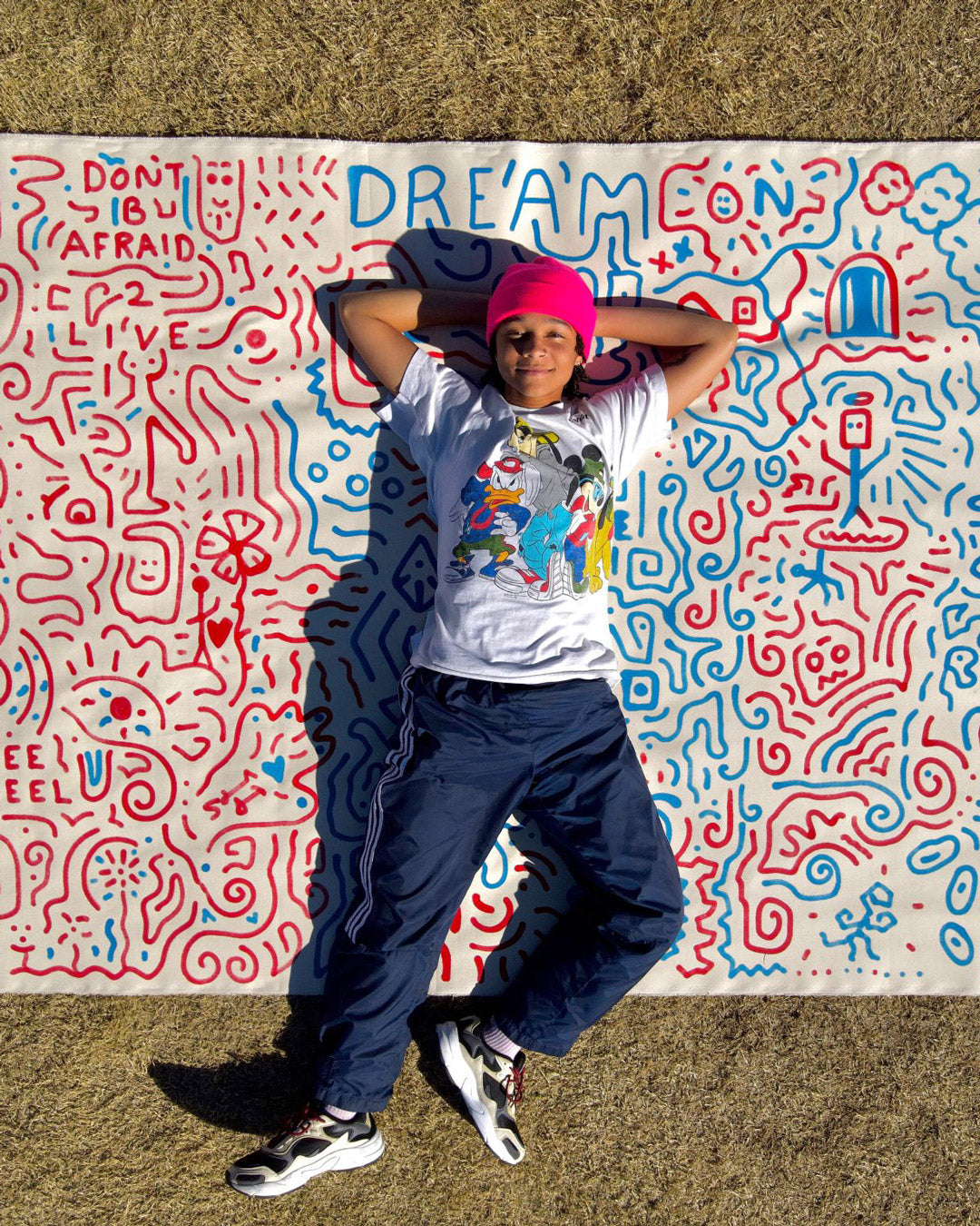 Sprayground teamed up with artist Shereen Jenkins to create one of one limited edition backpacks, pushing the boundaries of traditional bags. While many designer items are designed by the artist few are actually imprinted with the DNA. What was once a 60ft long canvas has been divided into 32 bags with no one bag alike.
