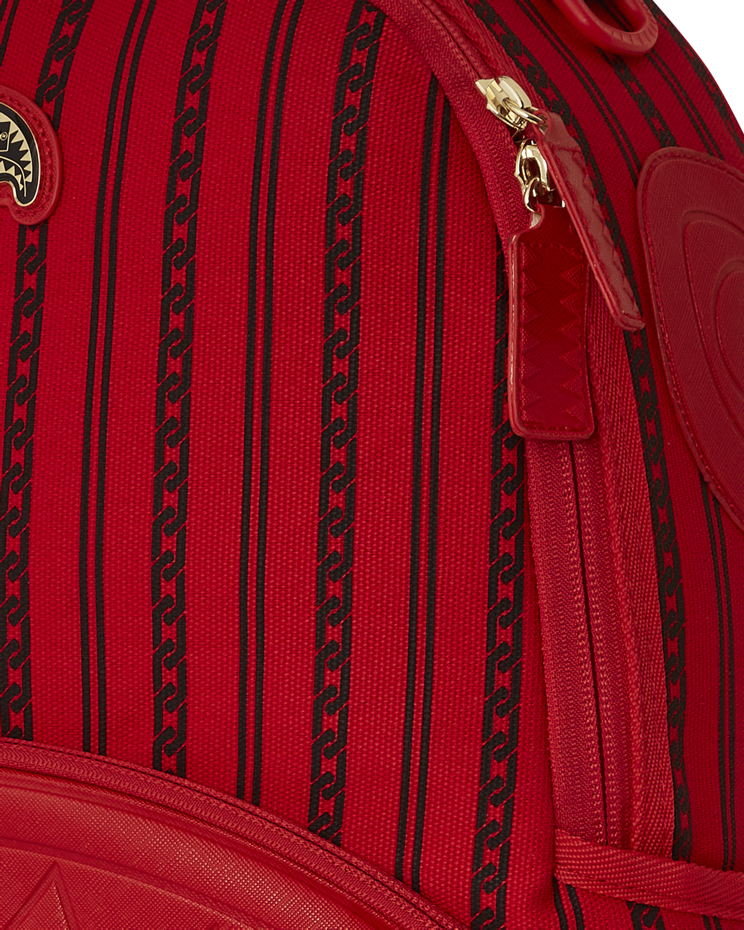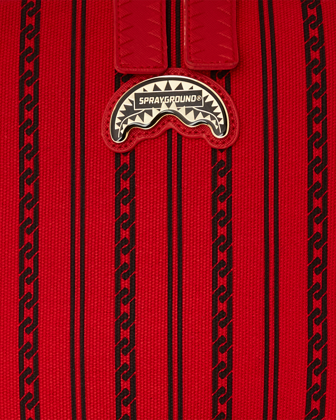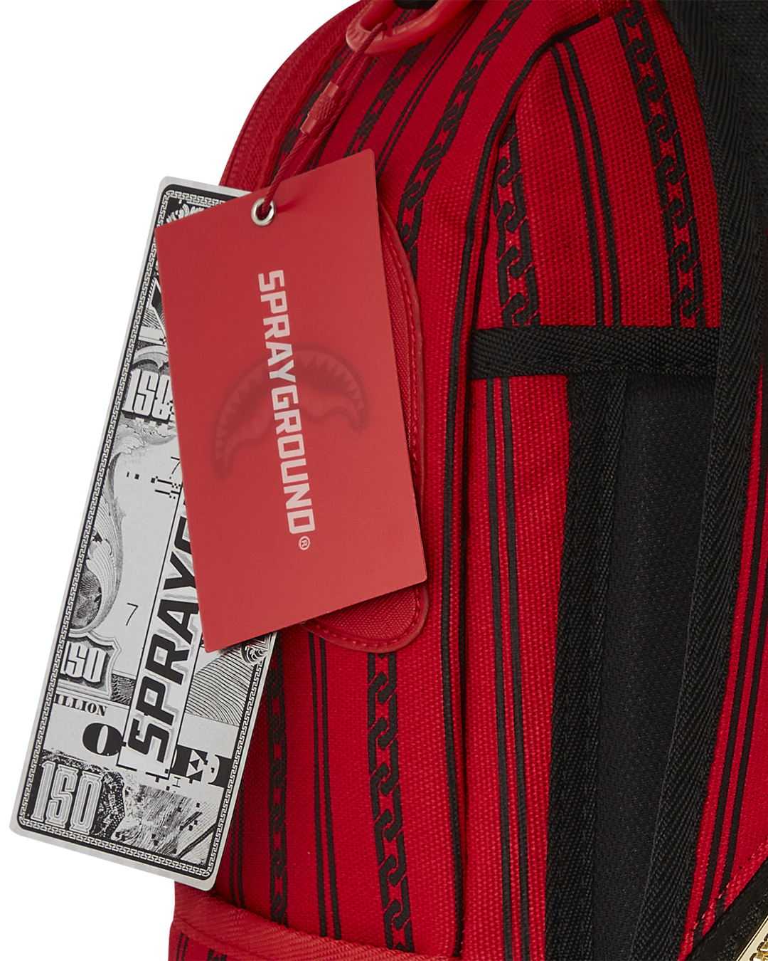 Dimensions: 18" x 6" x 11.5" • Front zipper pocket • Side pockets • Zippered Stash pocket • Separate velour sunglass compartment • Ergonomic mesh back padding • Adjustable Straps for custom sizing • Gold zippers with metal hardware • Metal "Sprayground Authentic" badge • Slide through back sleeve connects to carry-on luggage to free your hands
