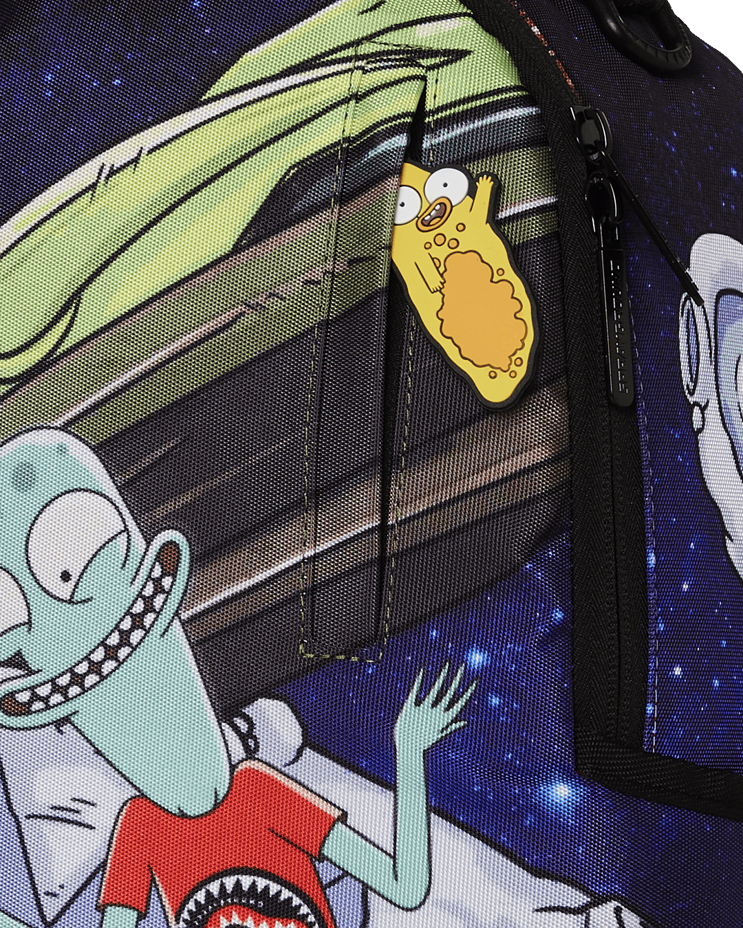 Dimensions: 18" x 6" x 11.5" • Front zipper pocket • Side pockets • Zippered Stash pocket • Separate velour sunglass compartment • Ergonomic mesh back padding • Adjustable Straps for custom sizing • Gold zippers with metal hardware • Metal "Sprayground Authentic" badge • Slide through back sleeve connects to carry-on luggage to free your hands