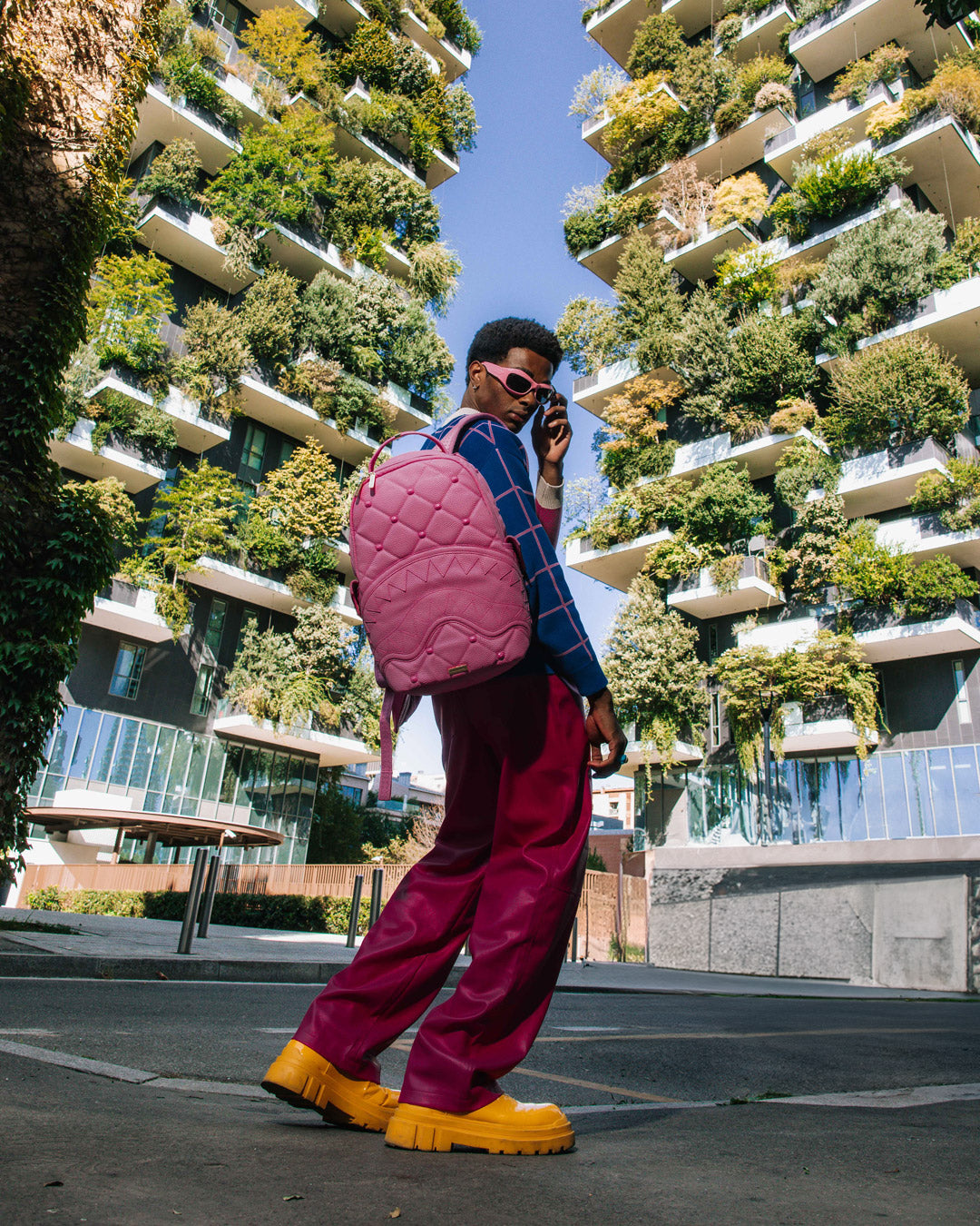 Dimensions: 18" x 6" x 11.5" • Front zipper pocket • Side pockets • Zippered Stash pocket • Separate velour sunglass compartment • Ergonomic mesh back padding • Adjustable Straps for custom sizing • Gold zippers with metal hardware • Metal "Sprayground Authentic" badge • Slide through back sleeve connects to carry-on luggage to free your hands