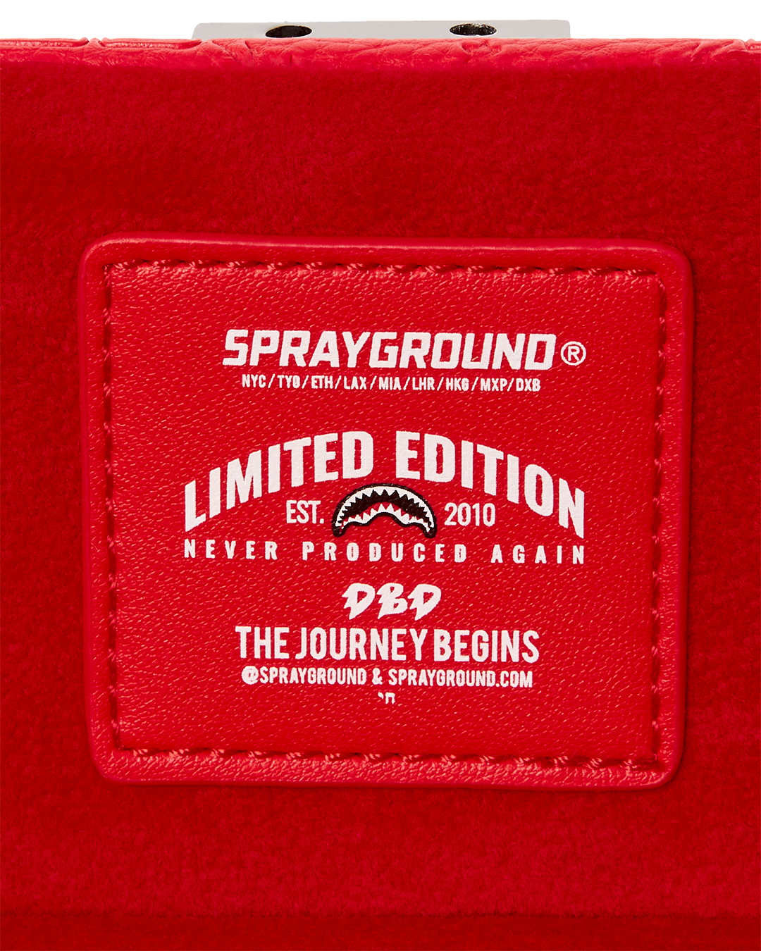 Red velour lining, Tiered shelving, removable tray, interior mirror.
