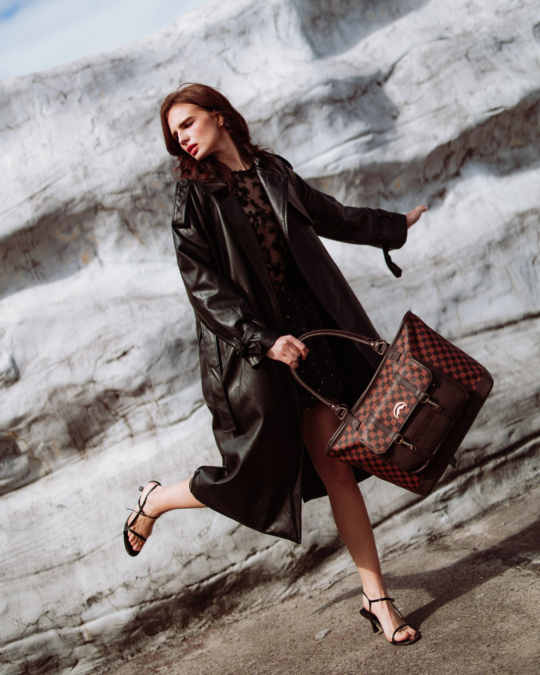 Dimensions: 22" x 7" x 13.5" • Top zipper opening • Top double handle • D-ring key clip • Zippers with metal hardware