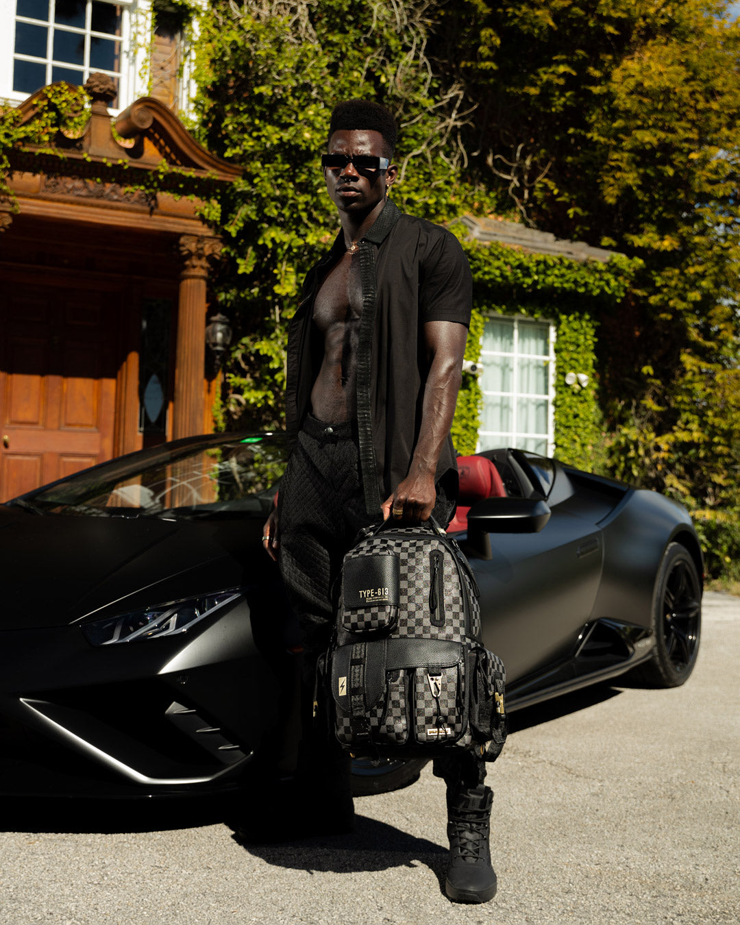 Dimensions: 18" x 6" x 11.5" • Front zipper pocket • Side pockets • Zippered Stash pocket • Separate velour sunglass compartment • Ergonomic mesh back padding • Adjustable Straps for custom sizing • Gold zippers with metal hardware • Metal "Sprayground Authentic" badge • Slide through back sleeve connects to carry-on luggage to free your hands