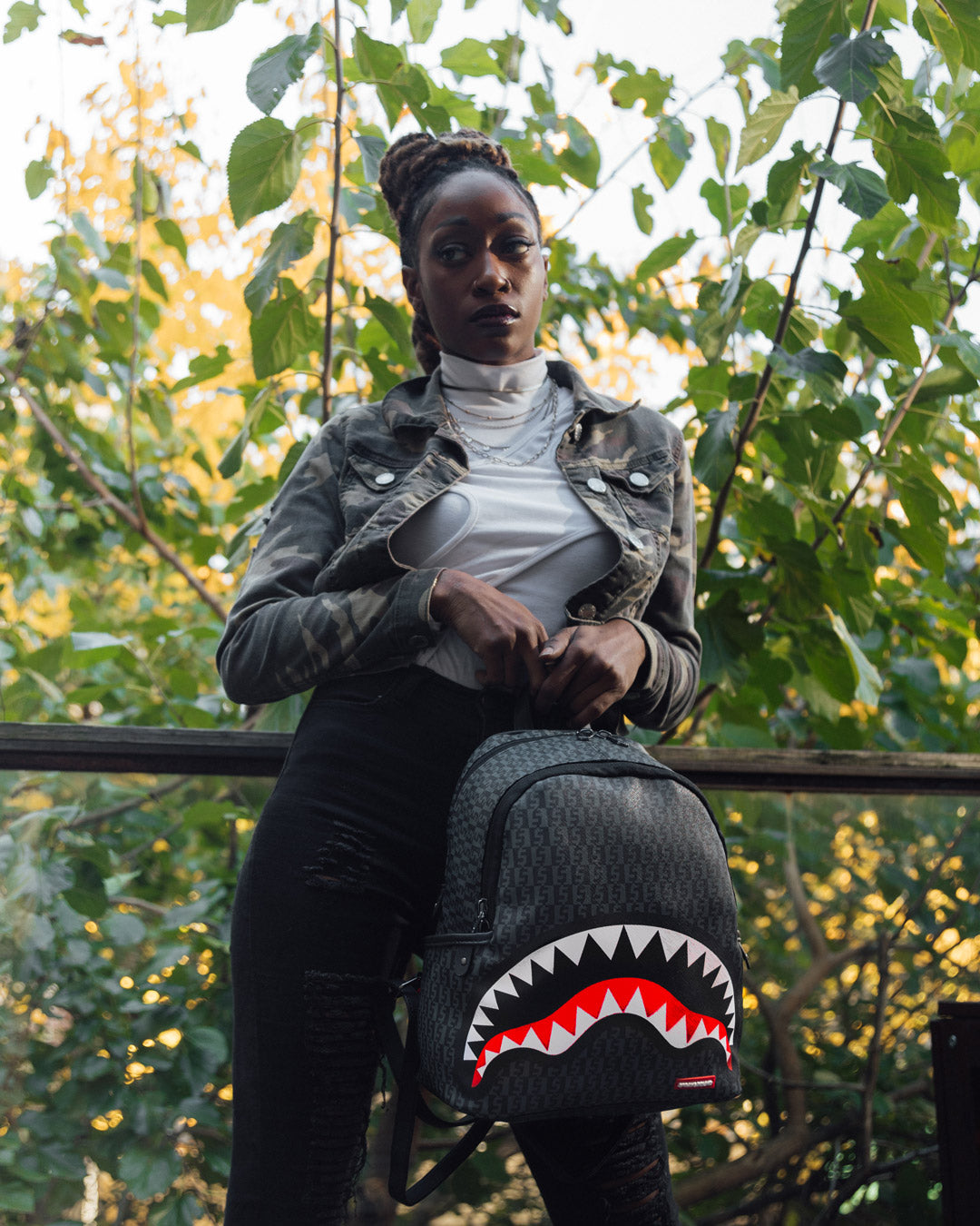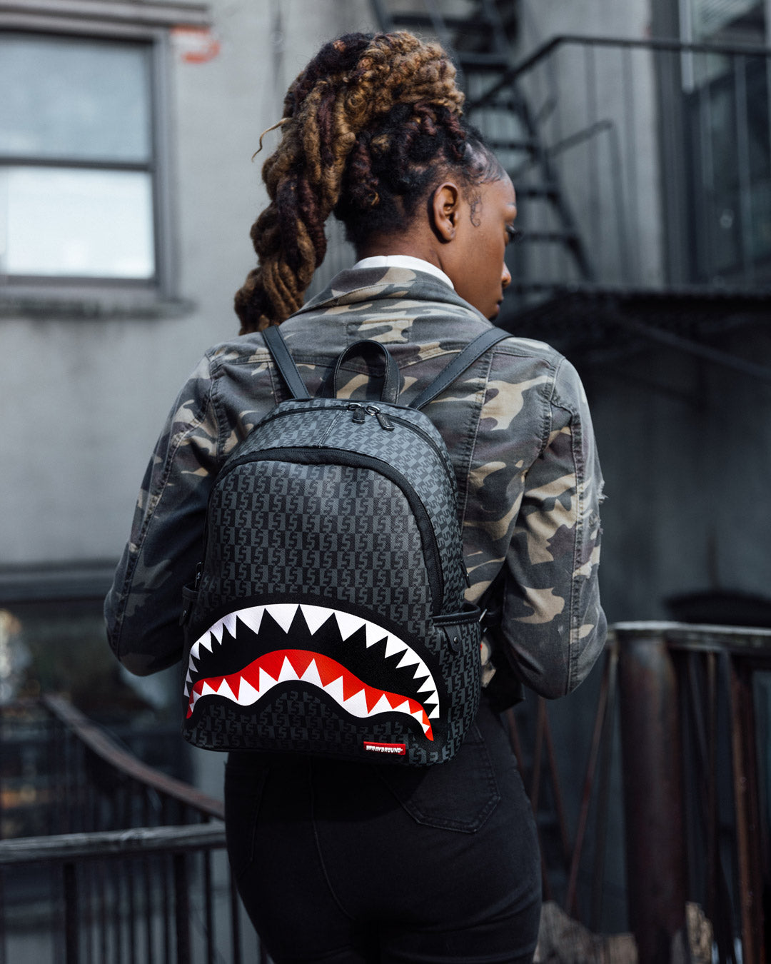 Dimensions: 10" x 5" x 11.5" • Two large main zippered compartments • Side pockets • Zippered Stash pocket • Adjustable straps for custom sizing • Gold zippers with metal hardware