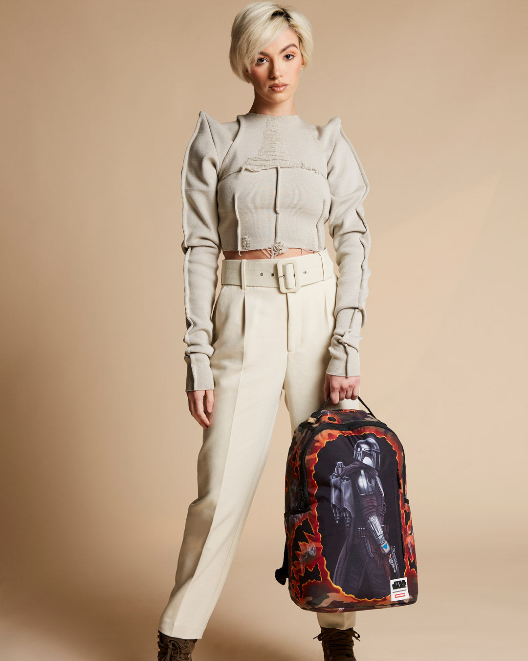 Dimensions: 18" x 6" x 11.5" • Front zipper pocket • Side pockets • Zippered Stash pocket • Separate velour sunglass compartment • Ergonomic mesh back padding • Adjustable Straps for custom sizing • Gold zippers with metal hardware • Metal "Sprayground Authentic" badge • Slide through back sleeve connects to carry-on luggage to free your hands