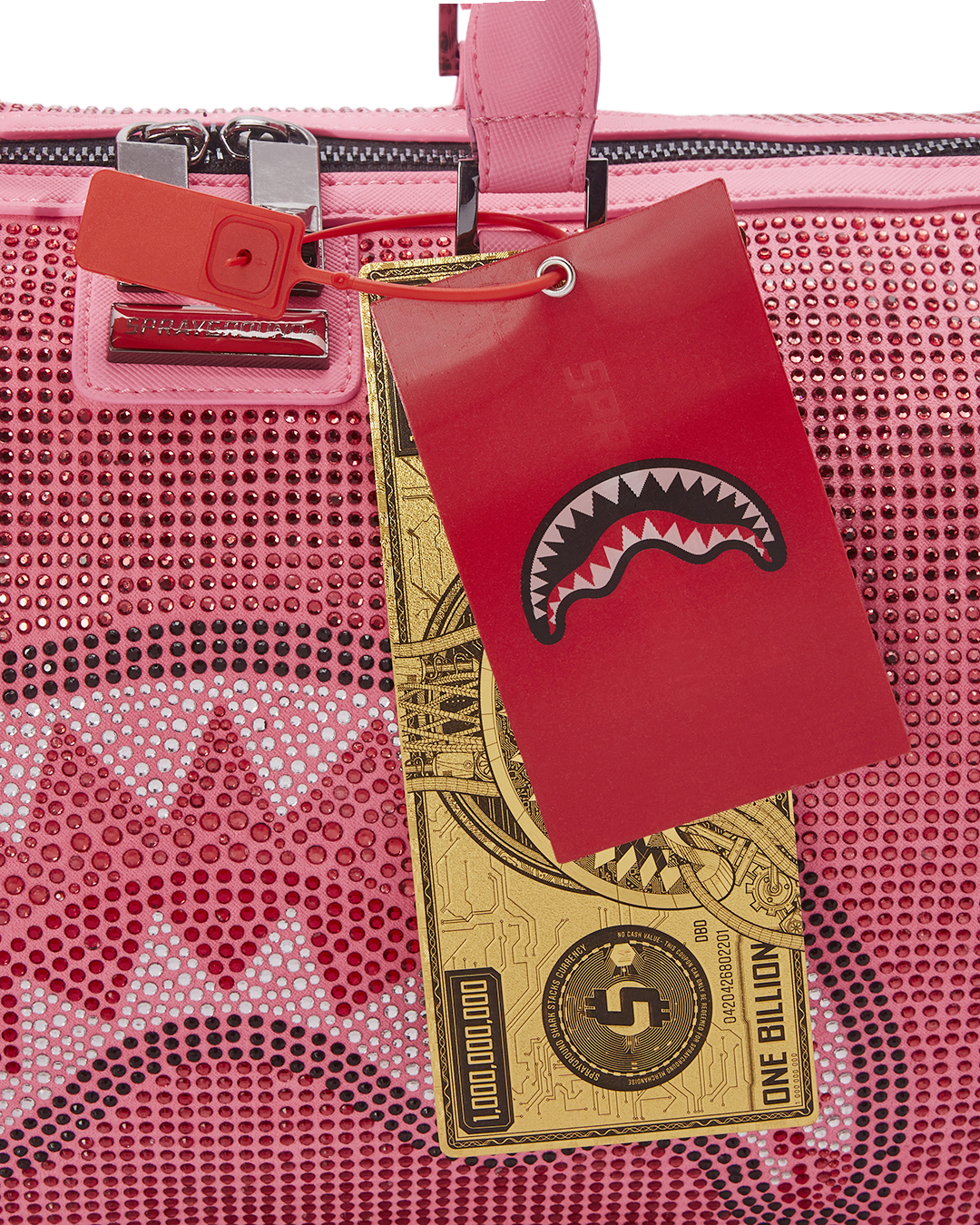 ExteriorDimensions: 8" x 7.5" x 13" • Zippered top opening • Zippered pocket on back panel • Zippered side pocket • Removable adjustable strap for custom sizing with reinforced crossbody construction • Logo embossed shoulder pad for comfort • Gold zippers with metal hardware • Zippered stash pocket