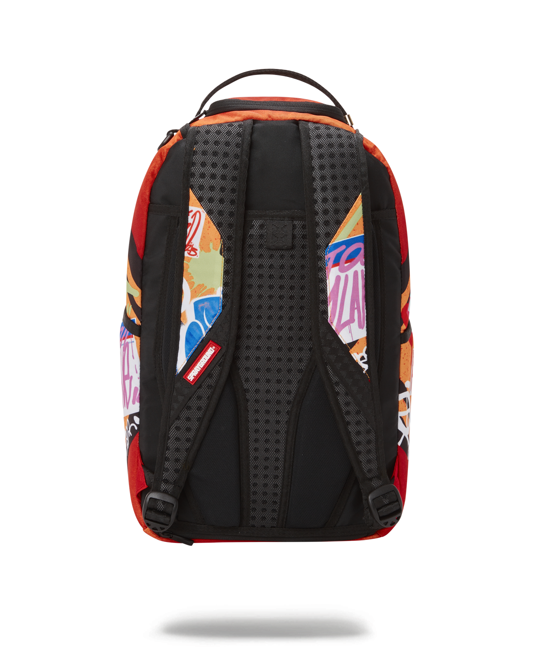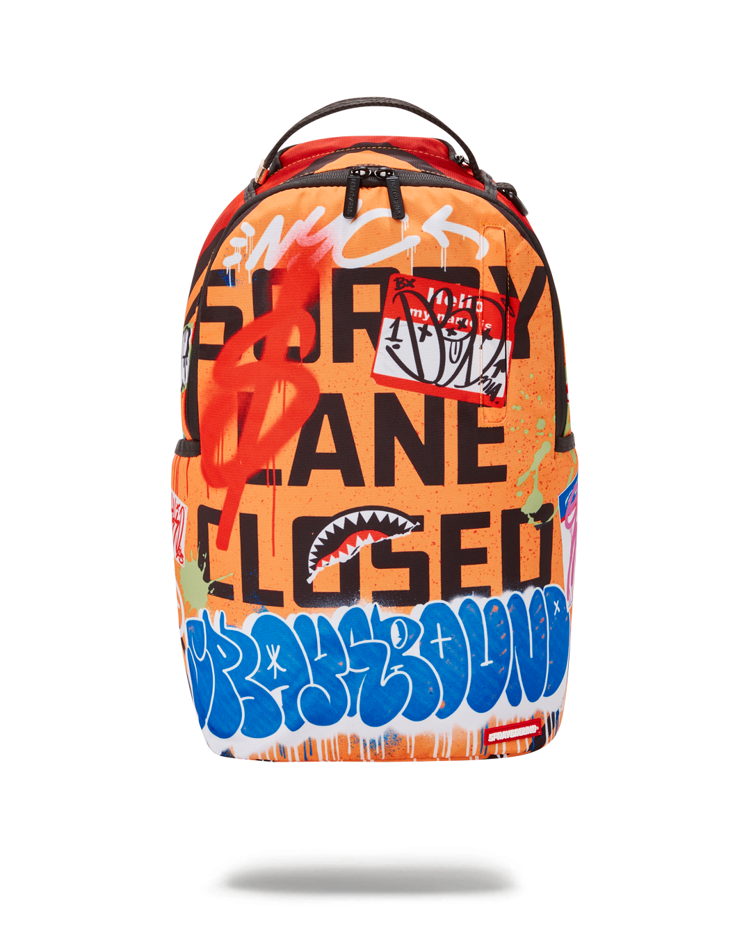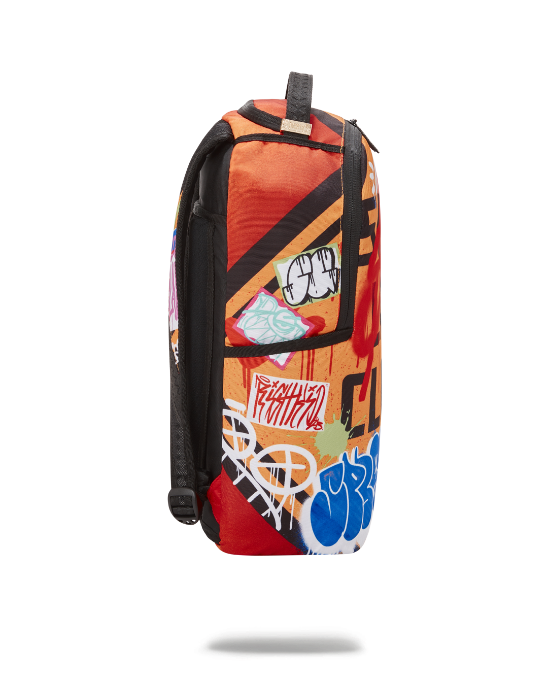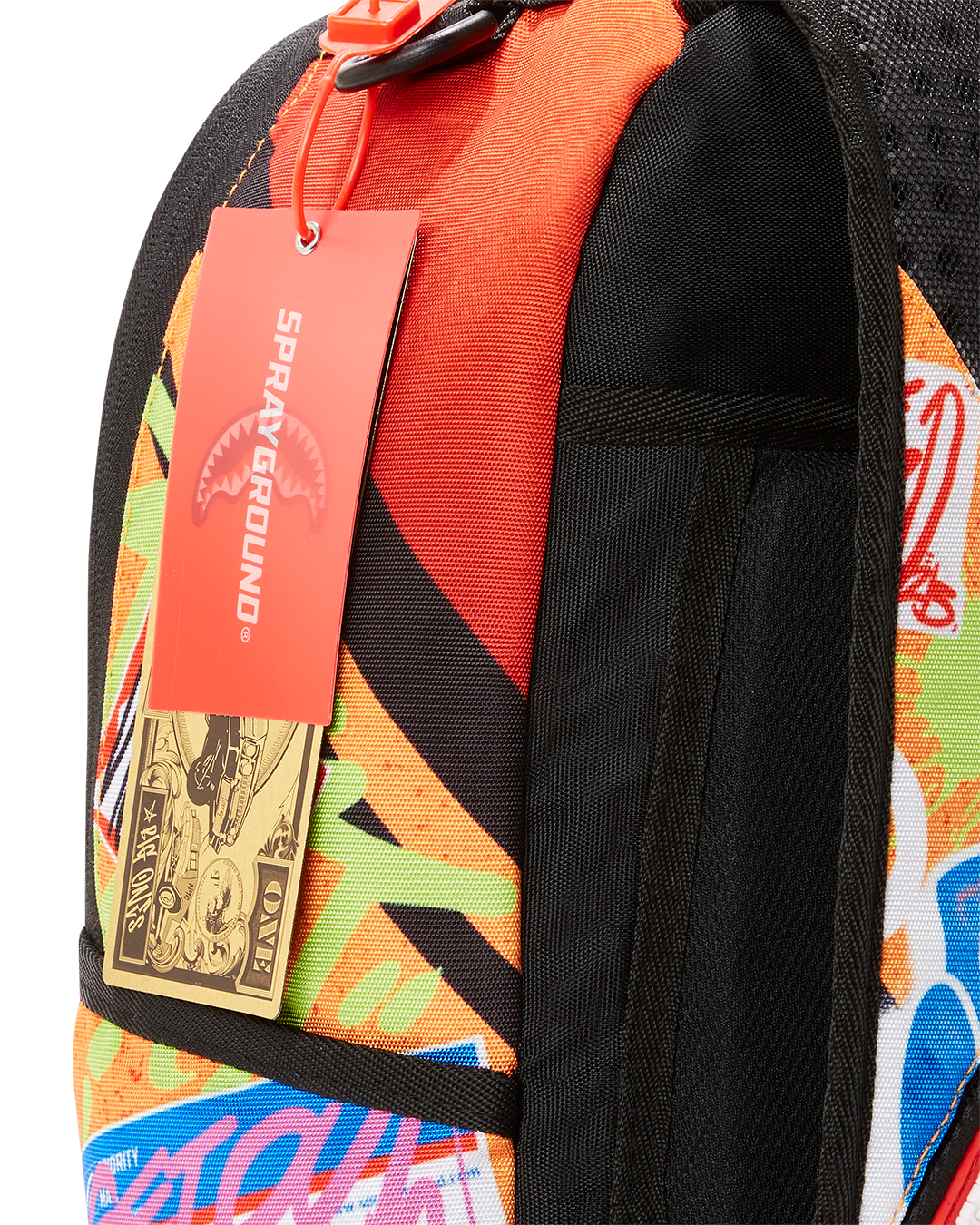 ExteriorDimensions: 18" x 6" x 11.5" • Front zipper pocket • Side pockets • Zippered Stash pocket • Separate velour sunglass compartment • Ergonomic mesh back padding • Adjustable Straps for custom sizing • Green zippers with metal hardware • Metal "Sprayground Authentic" badge • Slide through back sleeve connects to carry on luggage to free your hands