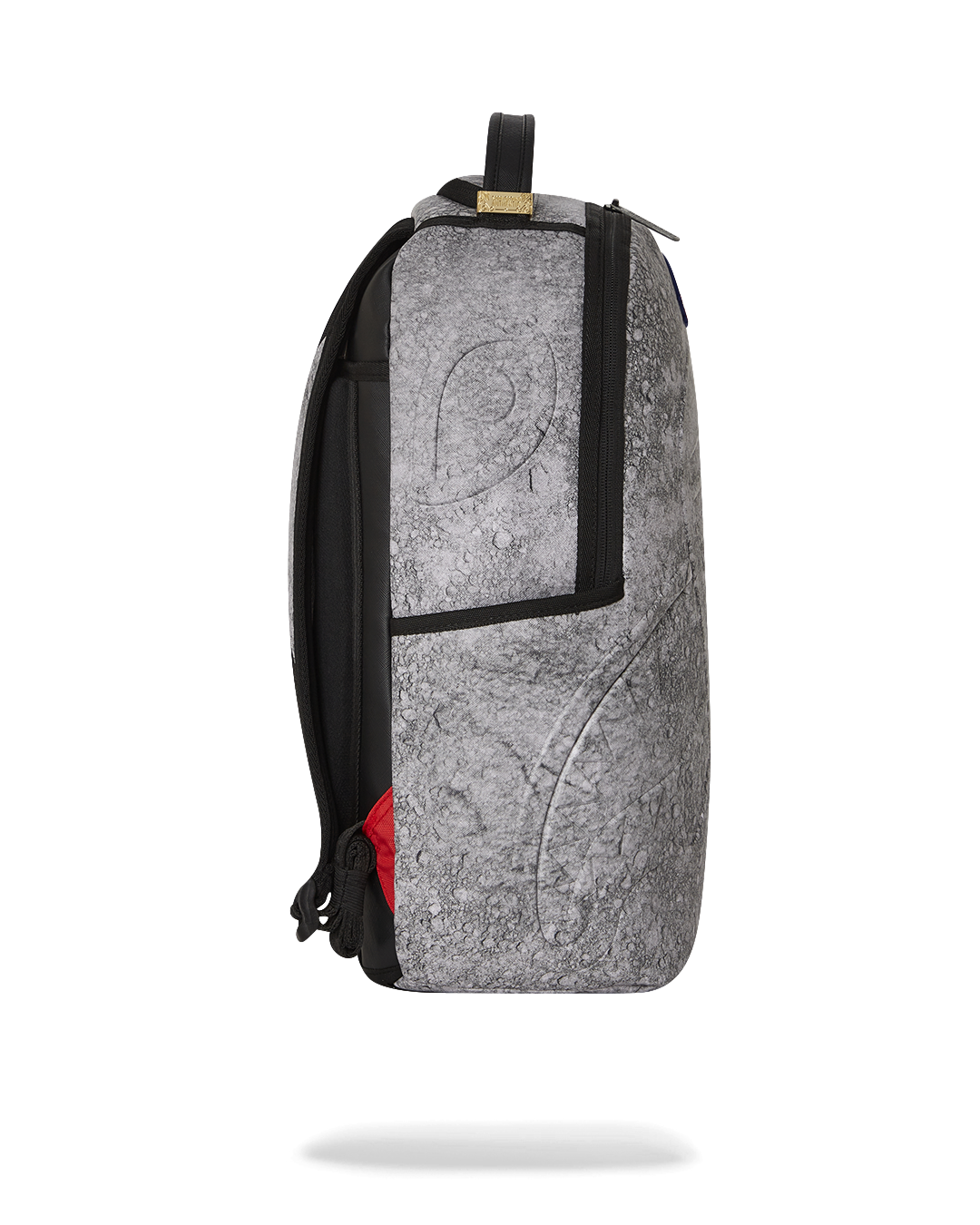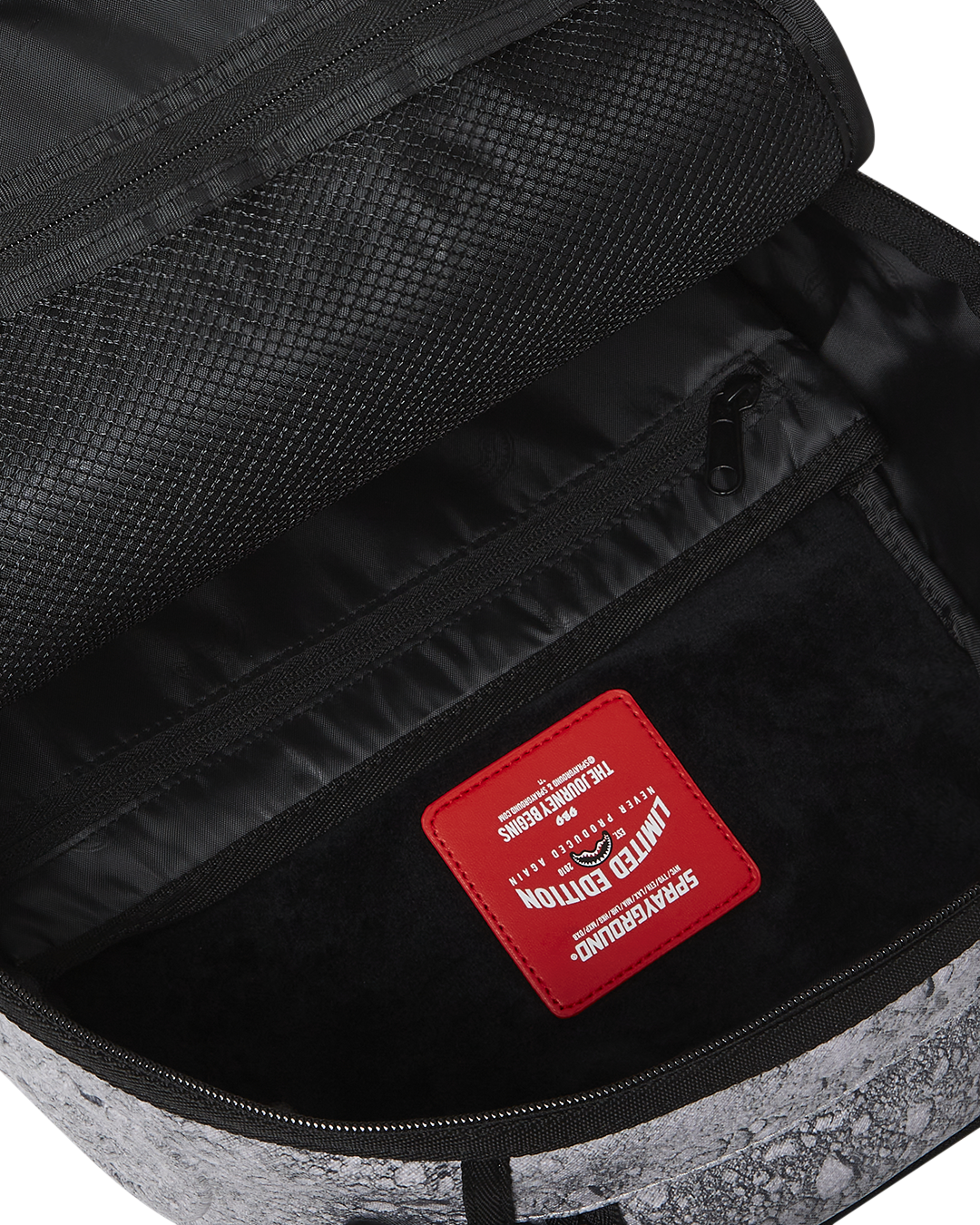 Dimensions: 18" x 6" x 11.5" • Front zipper pocket • Side pockets • Zippered Stash pocket • Separate velour sunglass compartment • Ergonomic mesh back padding • Adjustable Straps for custom sizing • Gold zippers with metal hardware • Metal "Sprayground Authentic" badge • Slide through back sleeve connects to carry-on luggage to free your hands