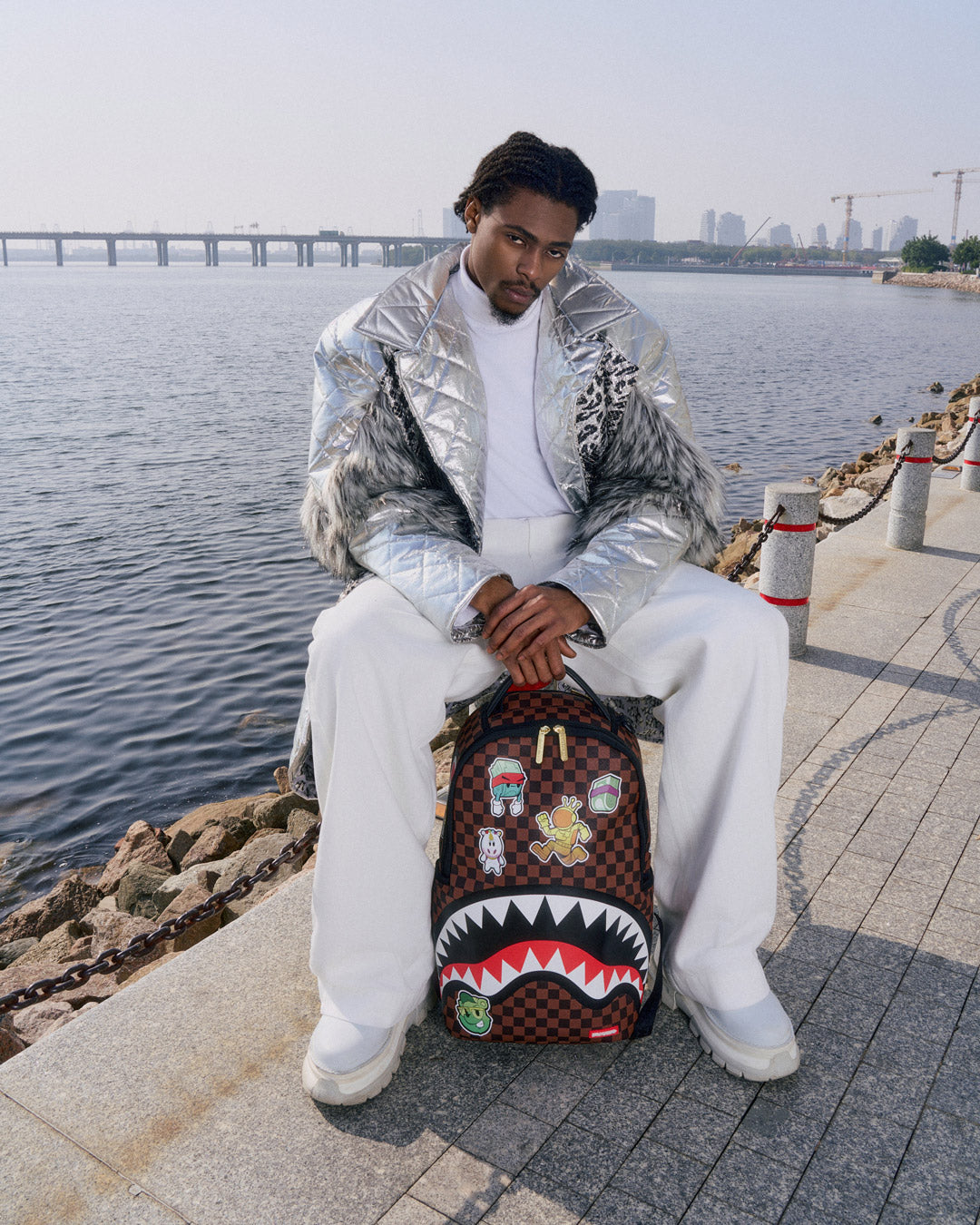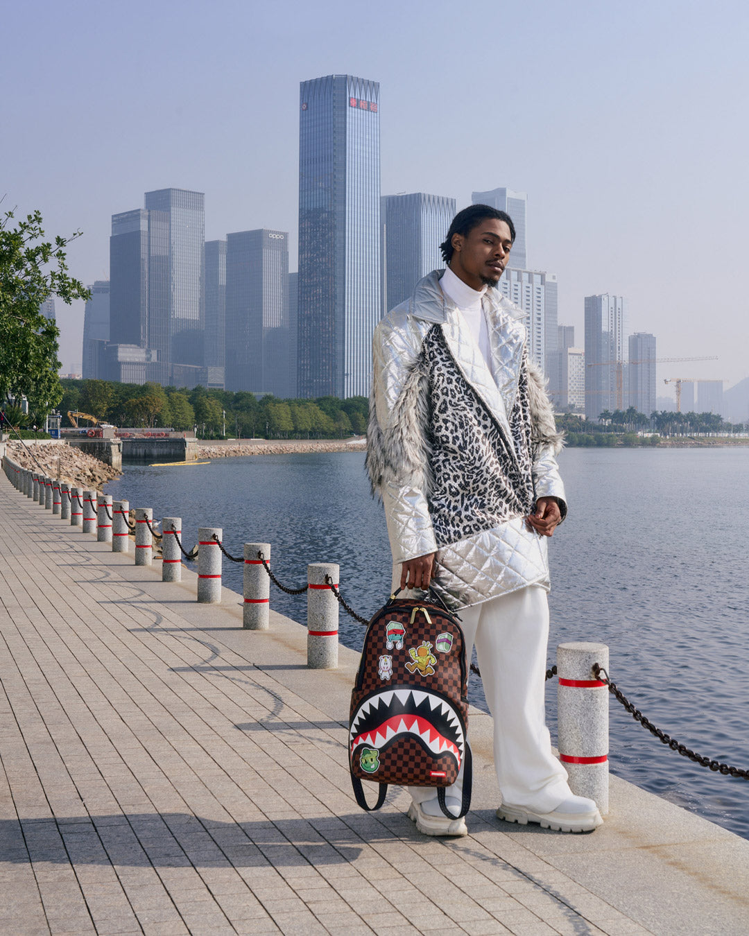 Dimensions: 18" x 6" x 11.5" • Front zipper pocket • Side pockets • Zippered Stash pocket • Separate velour sunglass compartment • Ergonomic mesh back padding • Adjustable Straps for custom sizing • Gold zippers with metal hardware • Metal "Sprayground Authentic" badge • Slide through back sleeve connects to carry-on luggage to free your hands